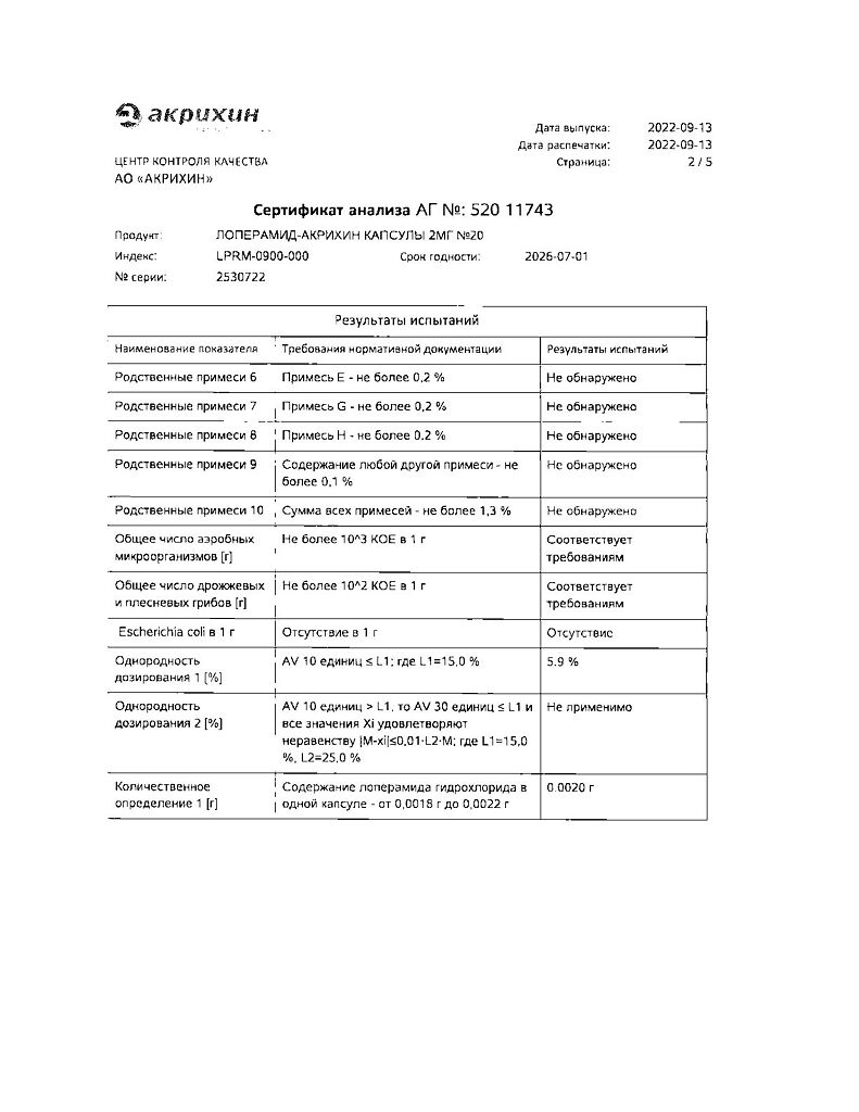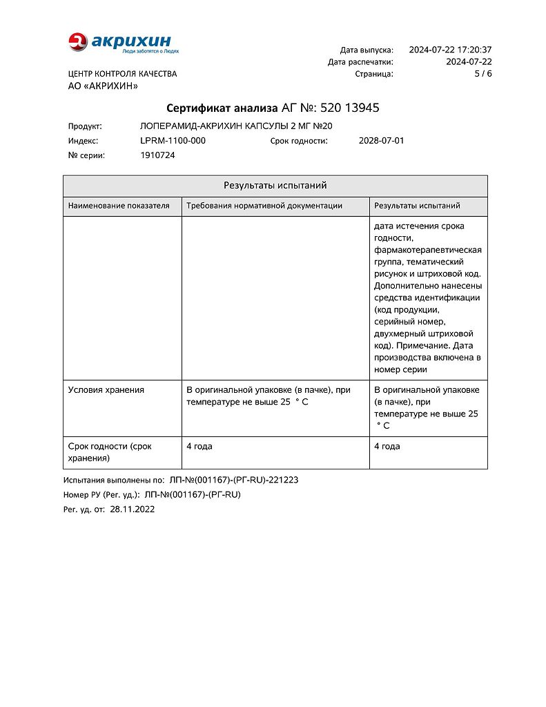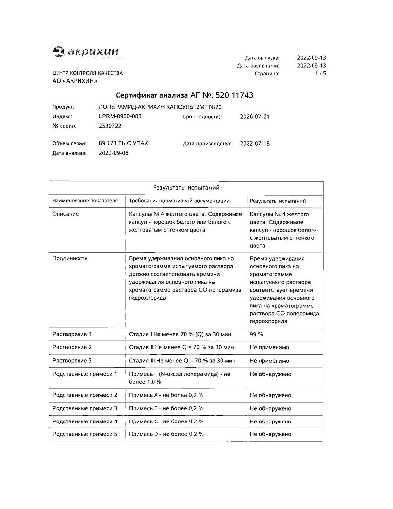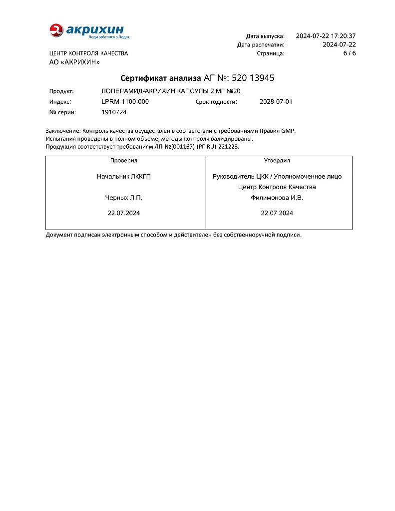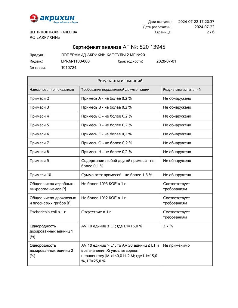 Действующее вещество: Лоперамид