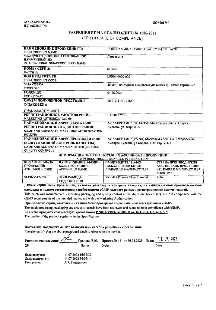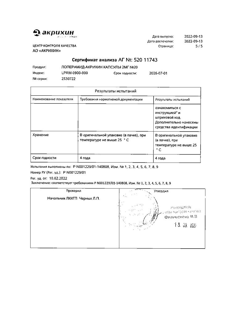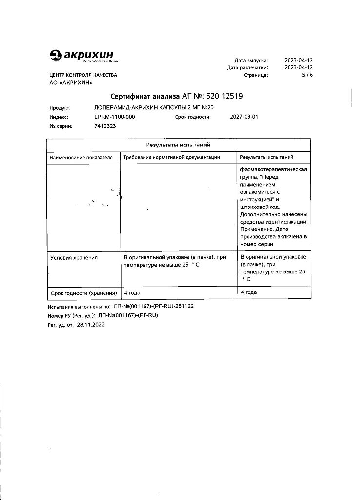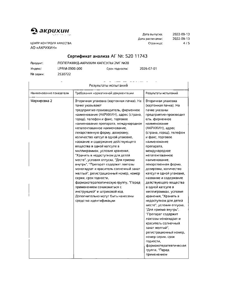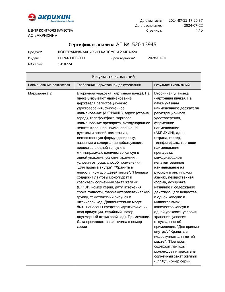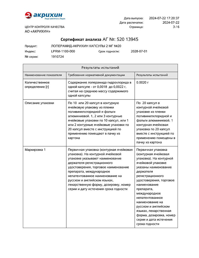Действующее вещество: Лоперамид