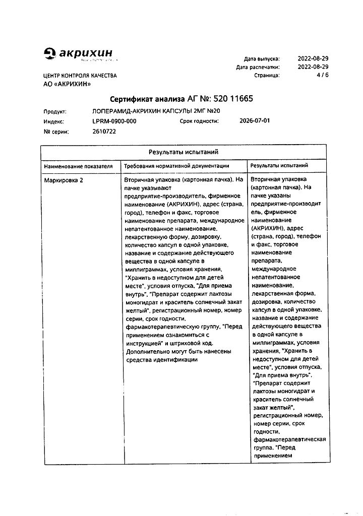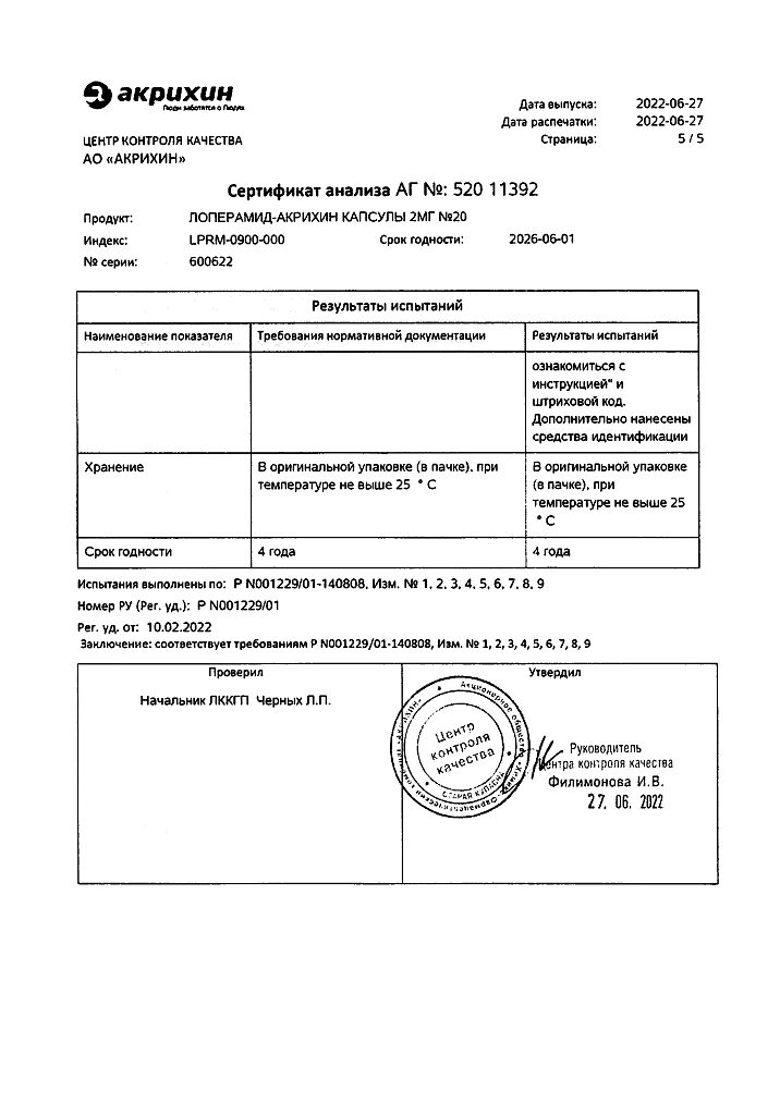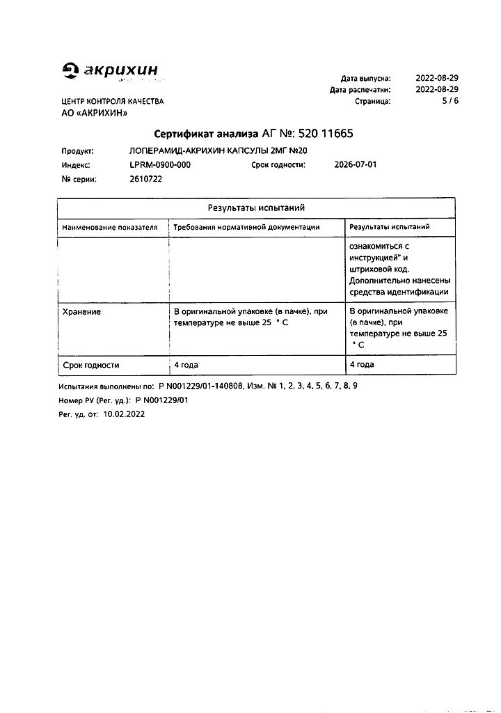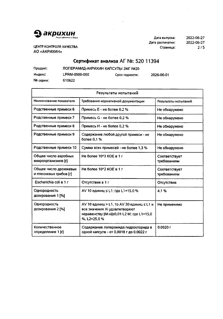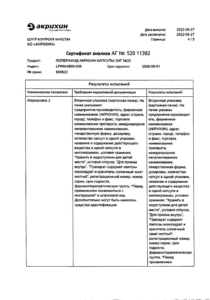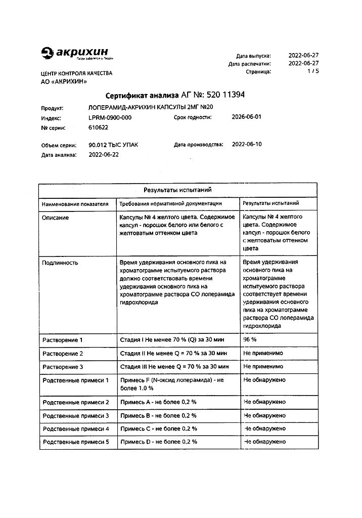 Действующее вещество: Лоперамид