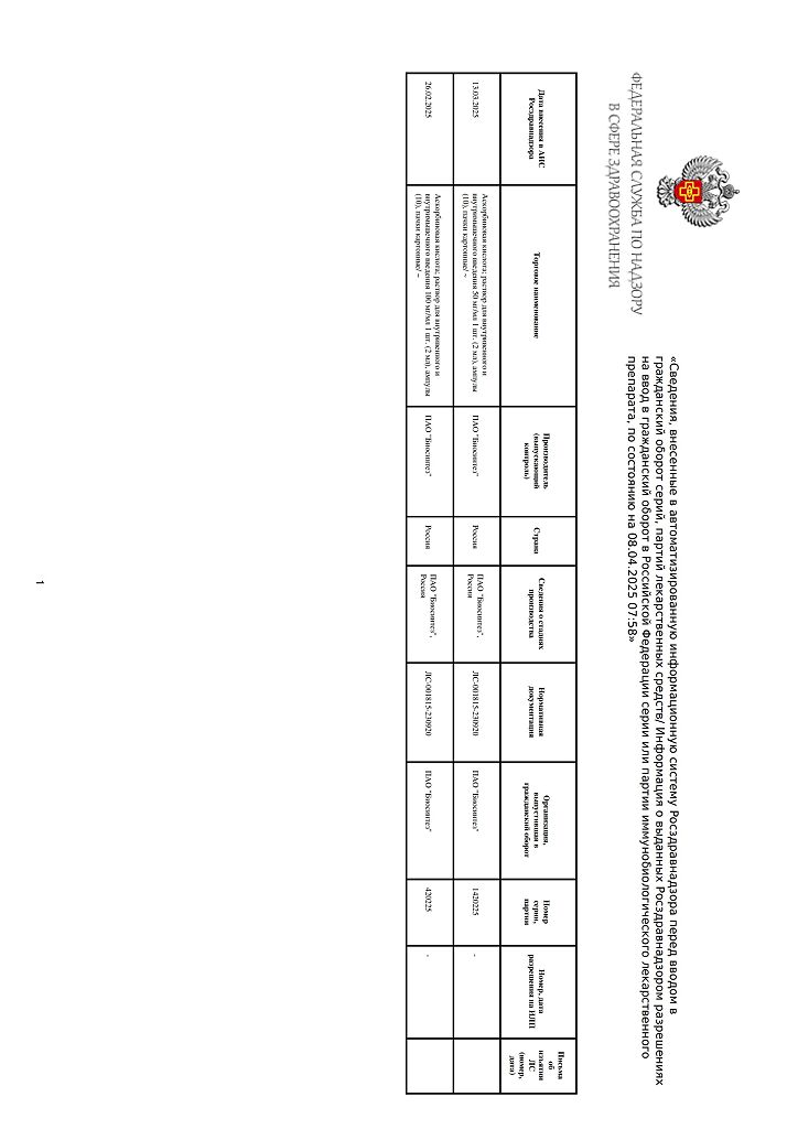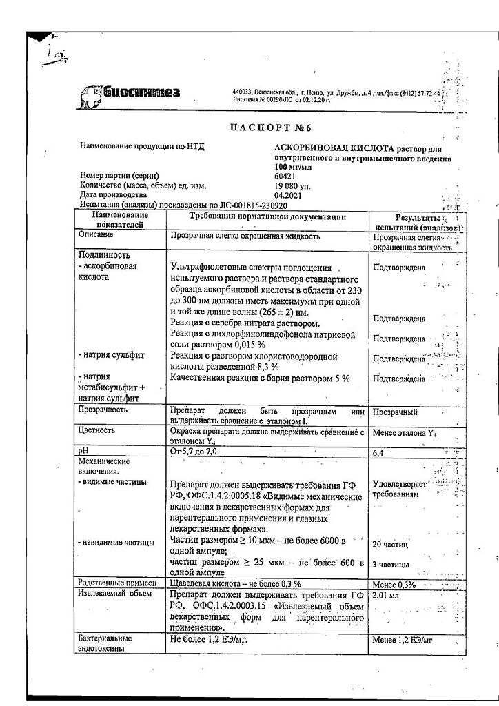 Действующее вещество: Аскорбиновая кислотa