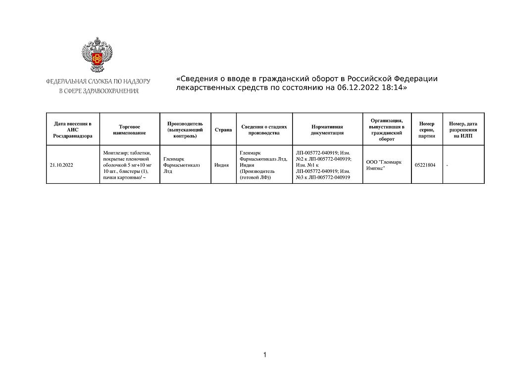 Производитель: Гленмарк Фармасьютикалз Лтд, Индия