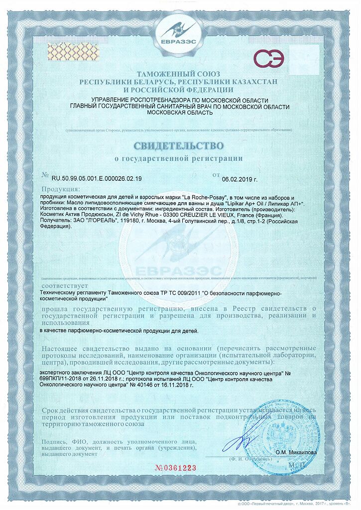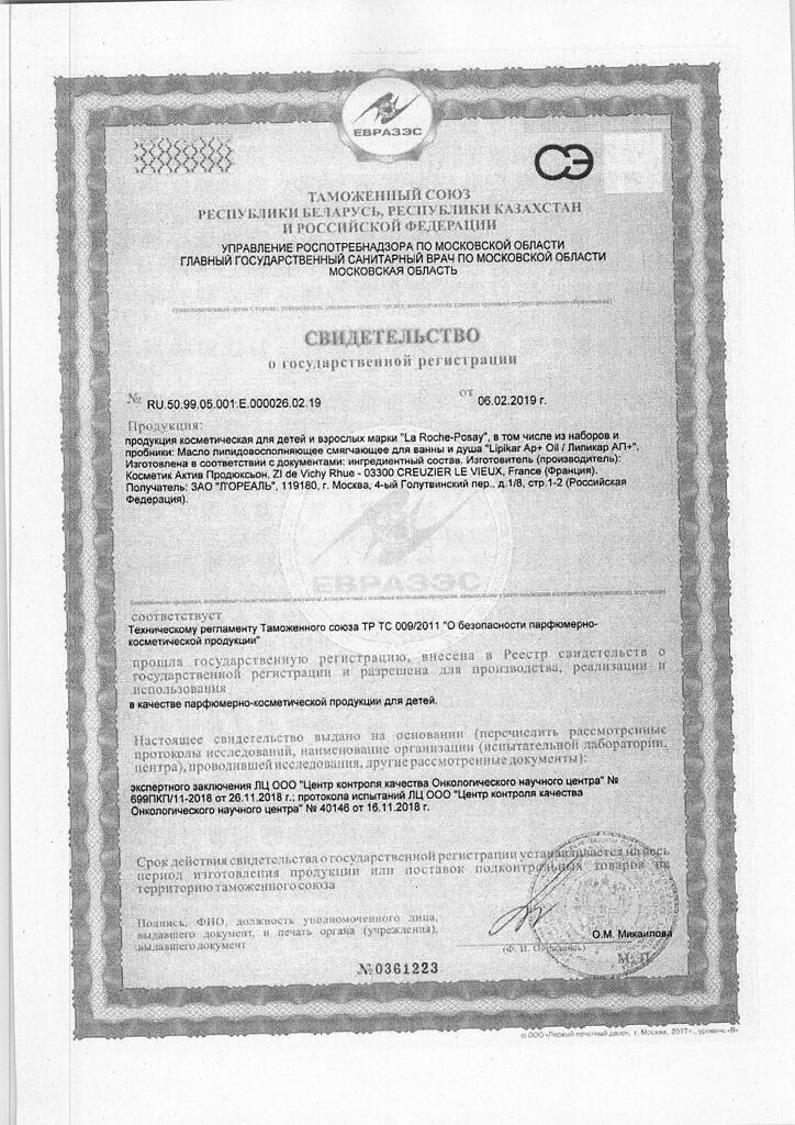Документы La Roche-Posay Lipikar Huile Lavante AP+ Масло очищающее для ванной и душа 750 мл 1 шт