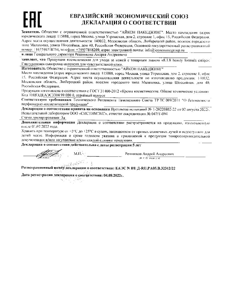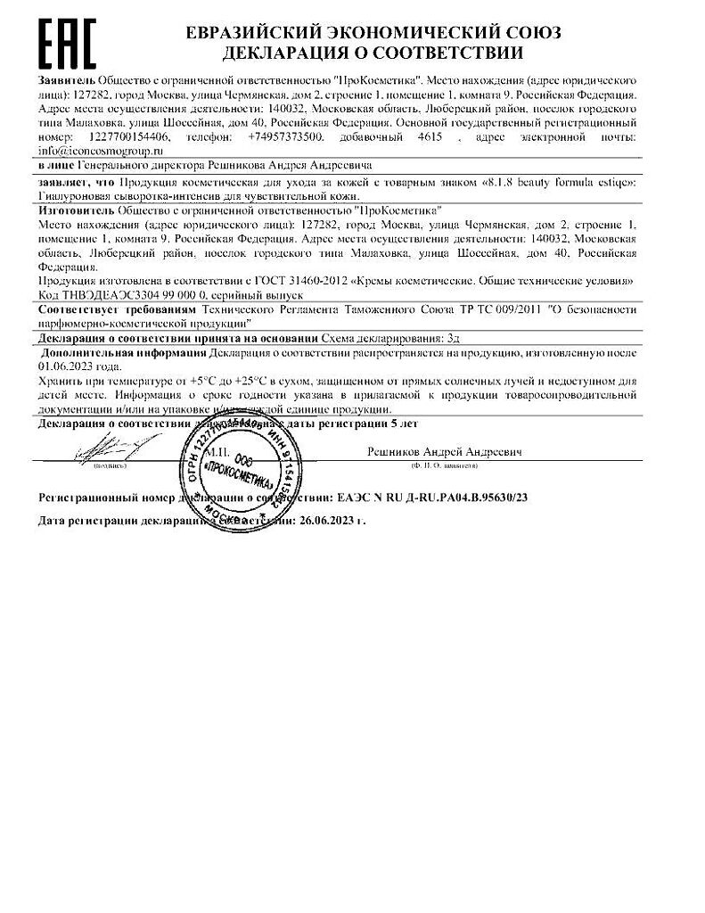 Документы 8.1.8 beauty formula Гиалуроновая сыворотка-интенсив для чувствительной кожи 30 мл 1 шт