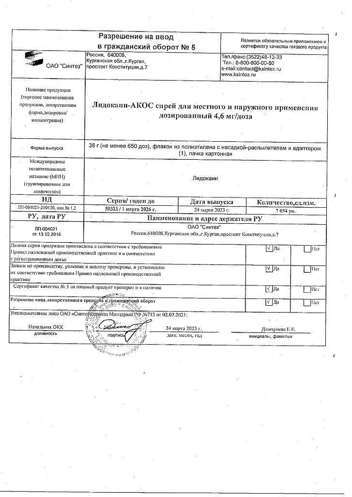 Действующее вещество: Лидокаин