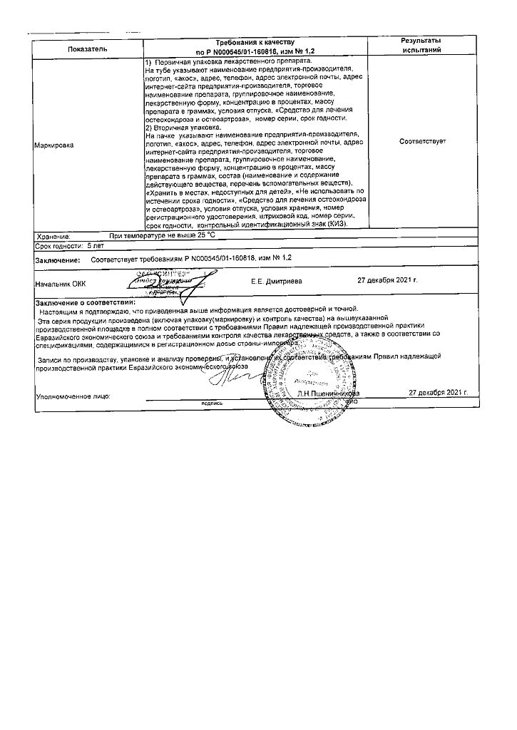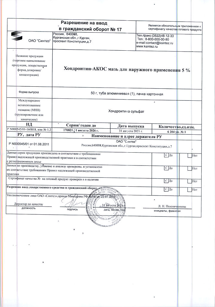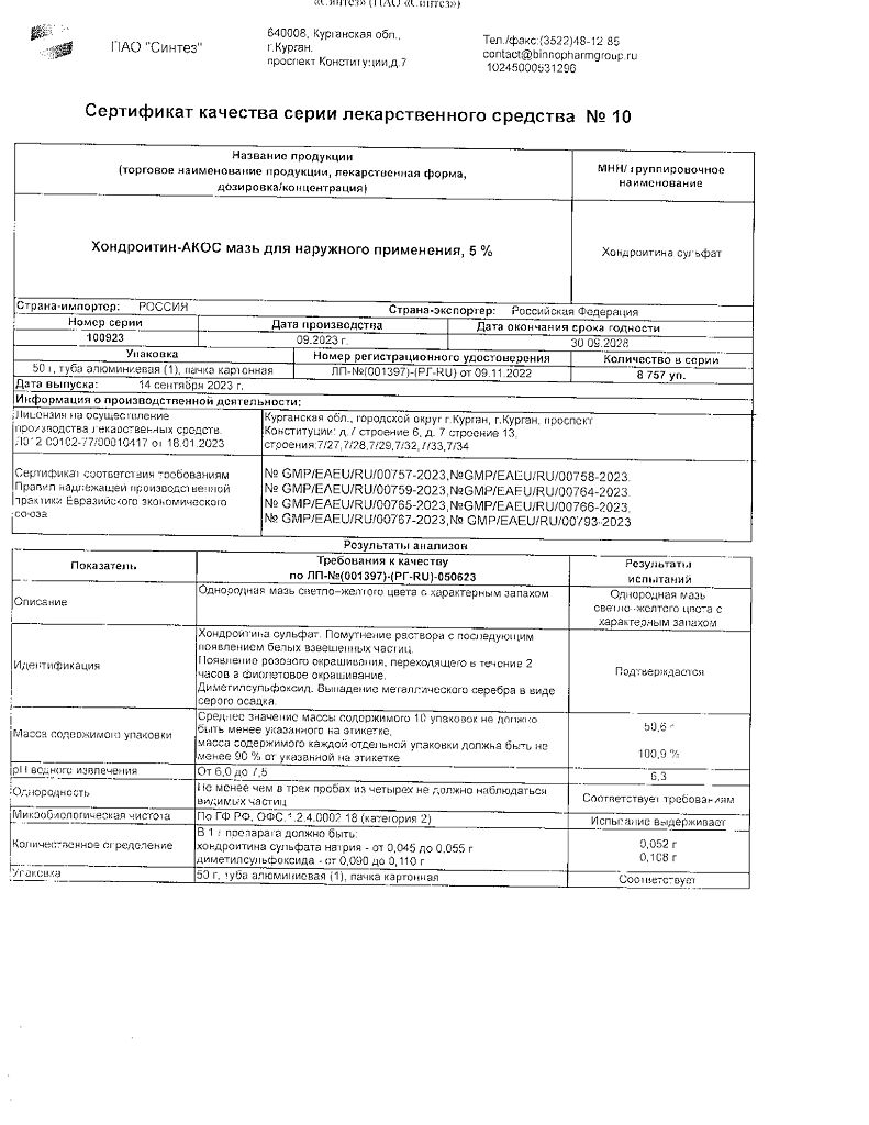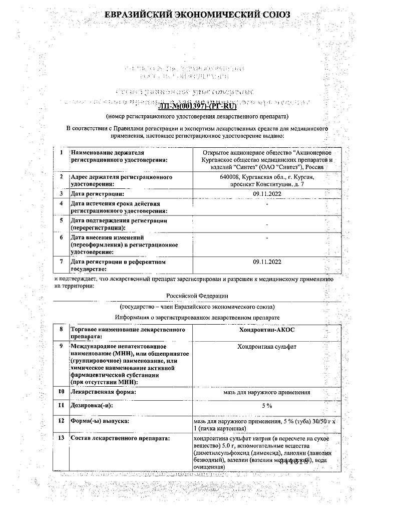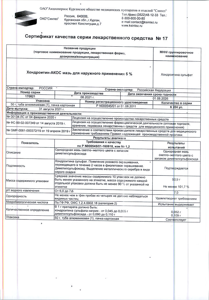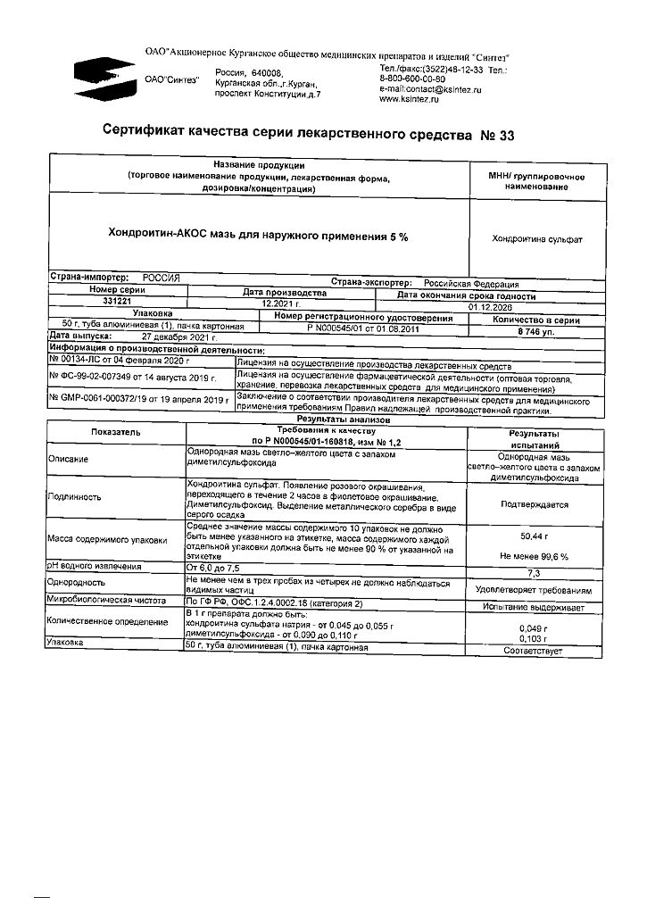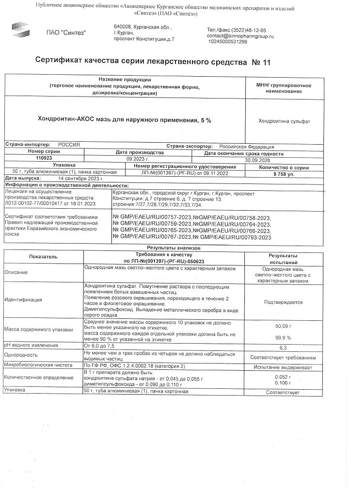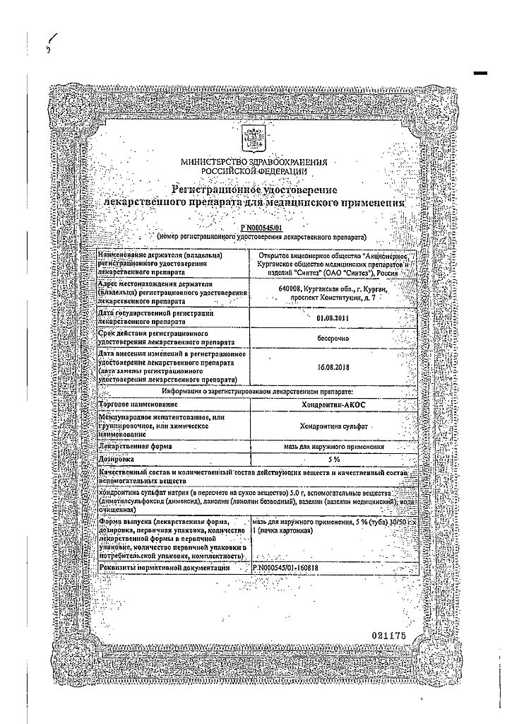 Действующее вещество: Хондроитина сульфат