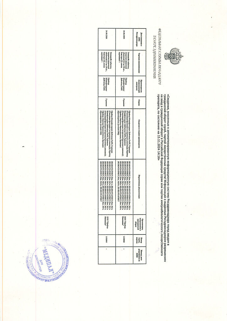 Производитель: Пфайзер Айрлэнд Фармасьютикалз, Ирландия