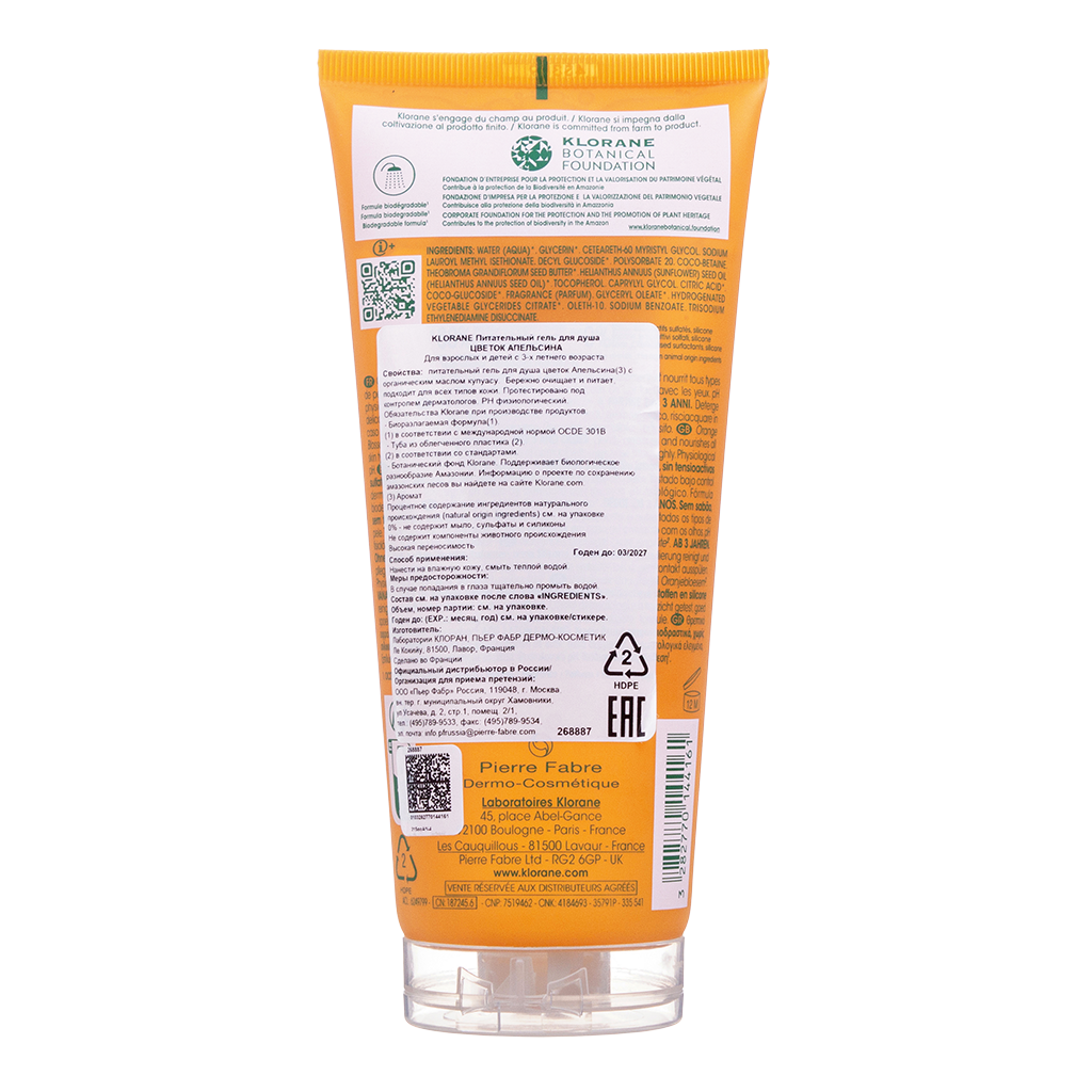 • 📒 Подробная инструкция по применению Klorane гель для душа питальный цветок апельсина с органическим маслом Купуасу 200 мл 1 шт