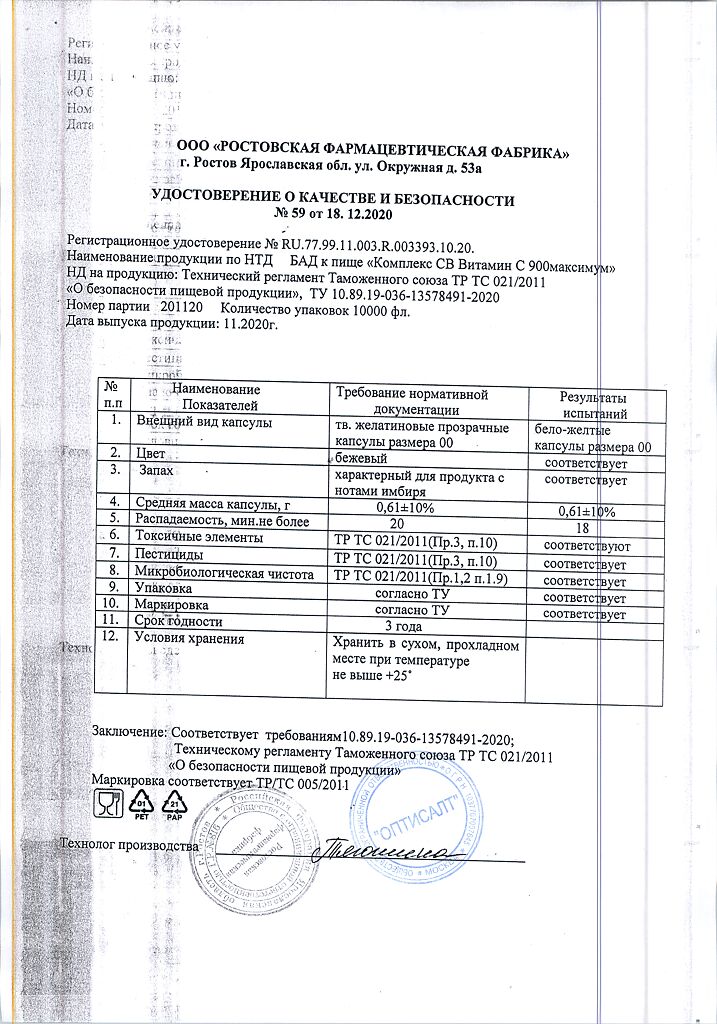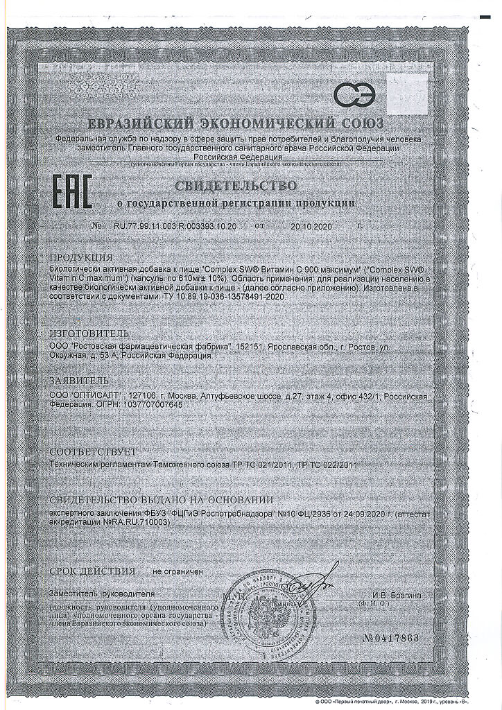 Витамин С 900 мг (Аскорбат кальция)