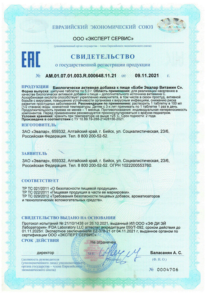 Документы Бэби Эвалар Витамин С шипучие таблетки 3+ по 5 г 15 шт