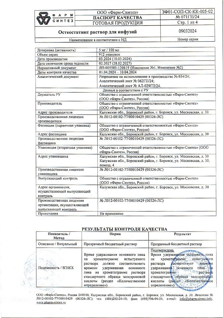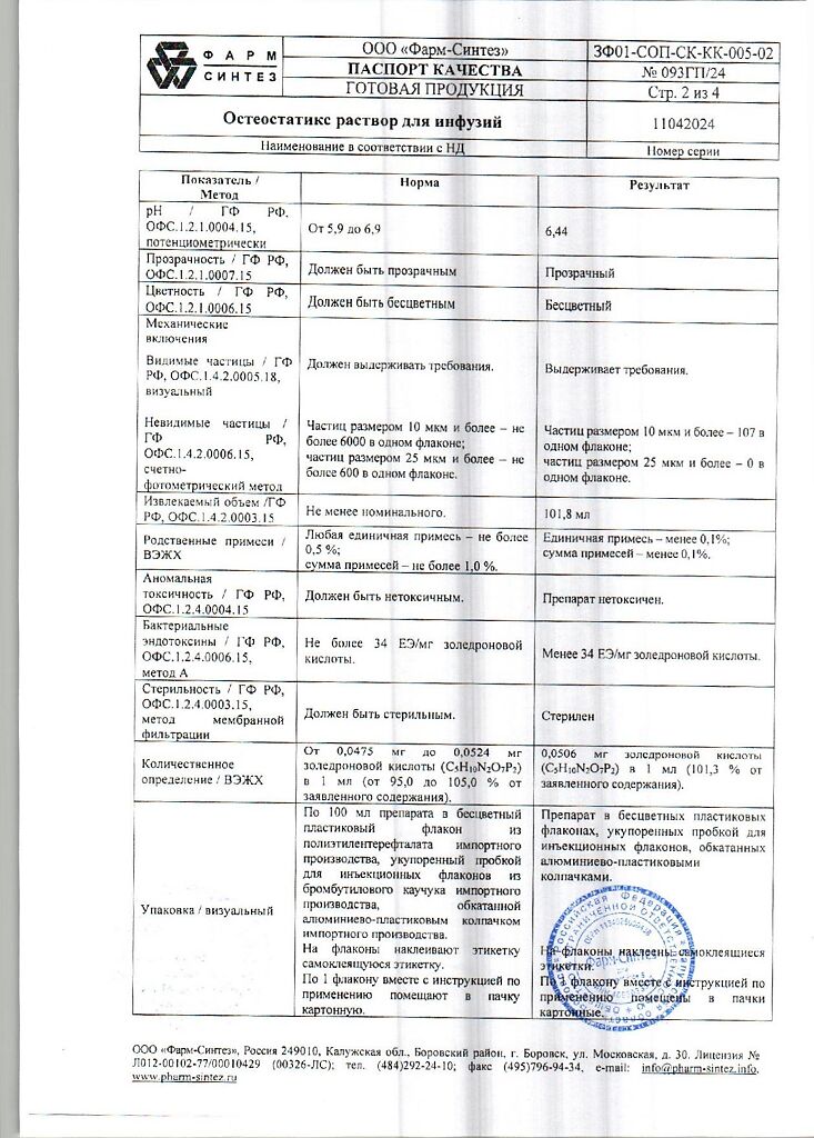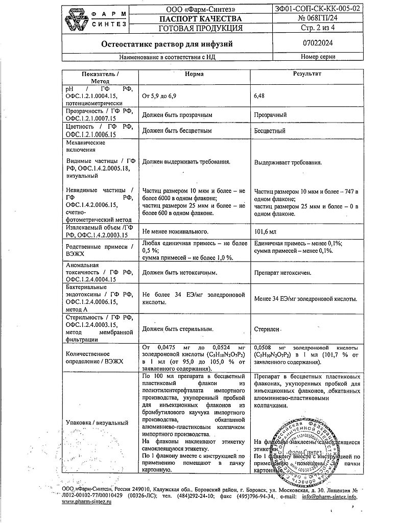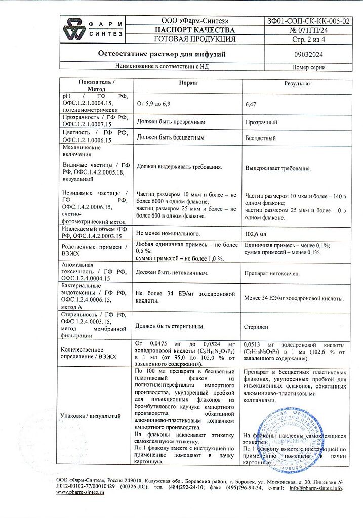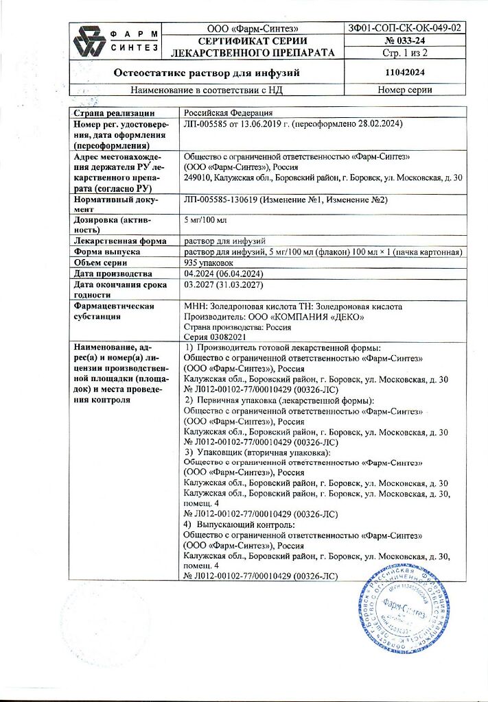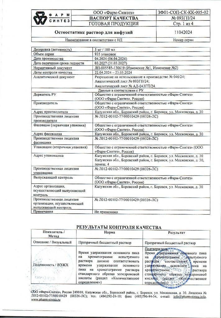 Действующее вещество: Золедроновая кислота