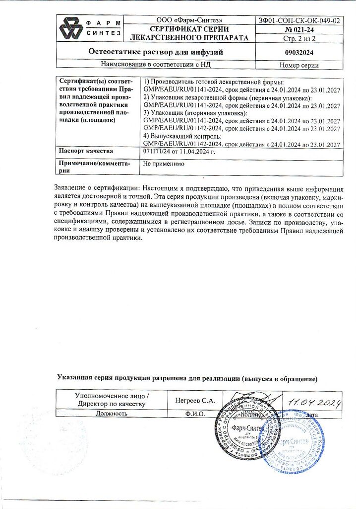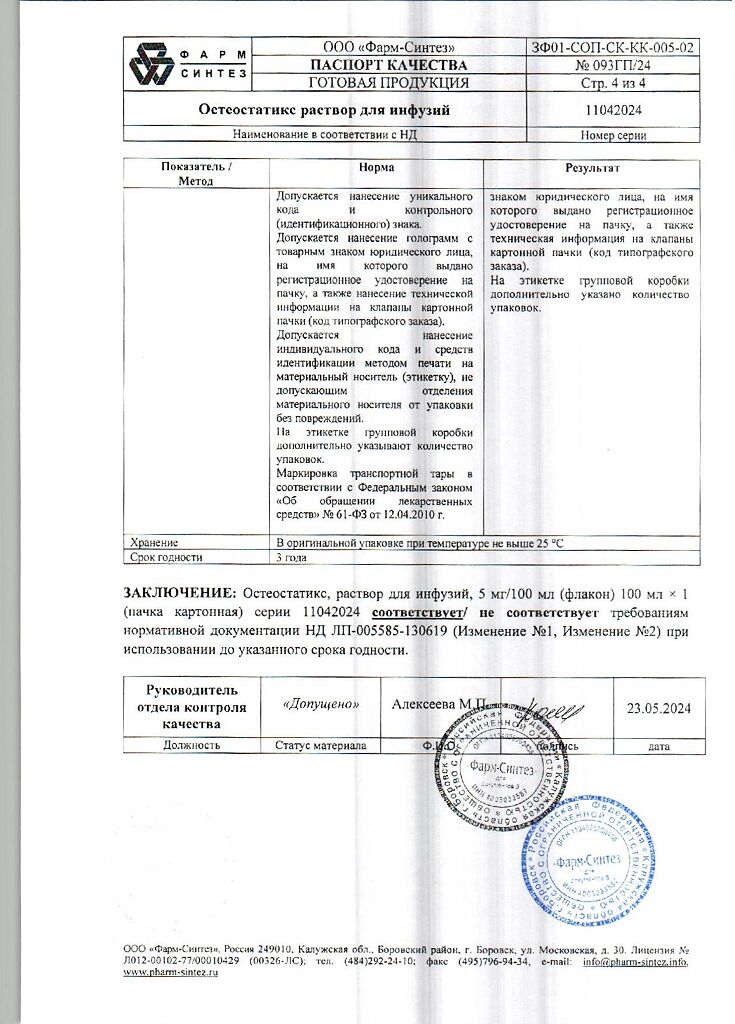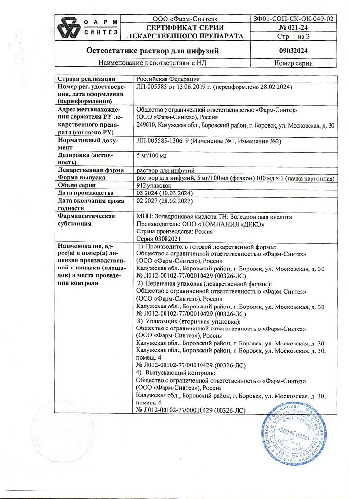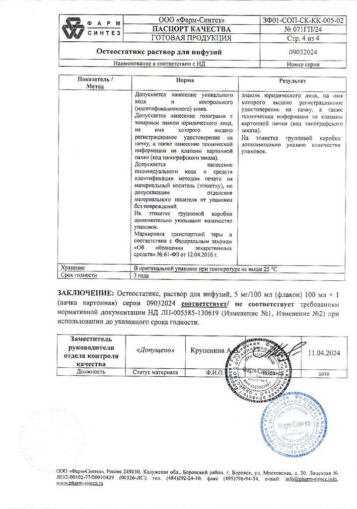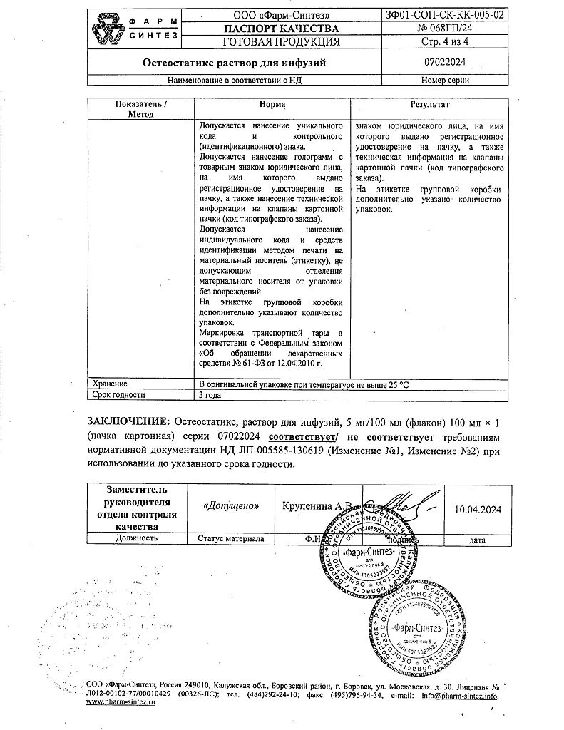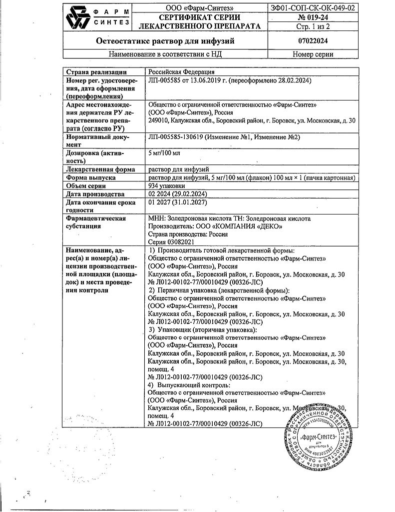 Действующее вещество: Золедроновая кислота