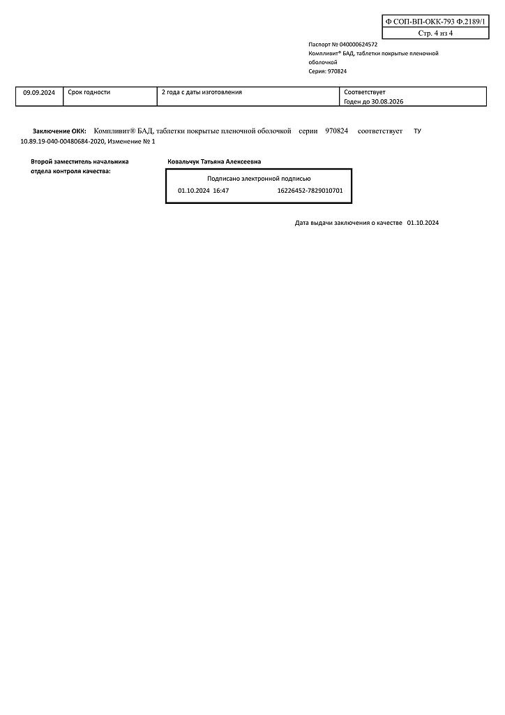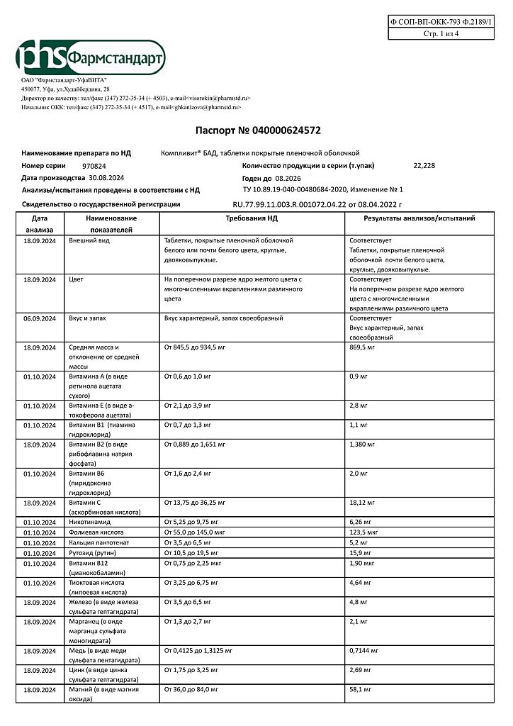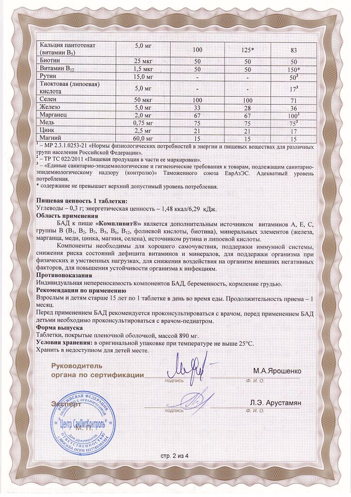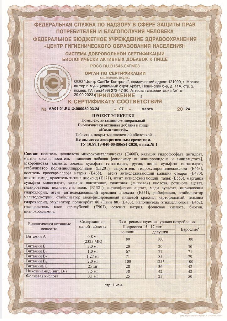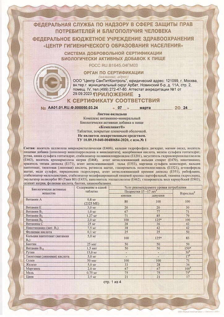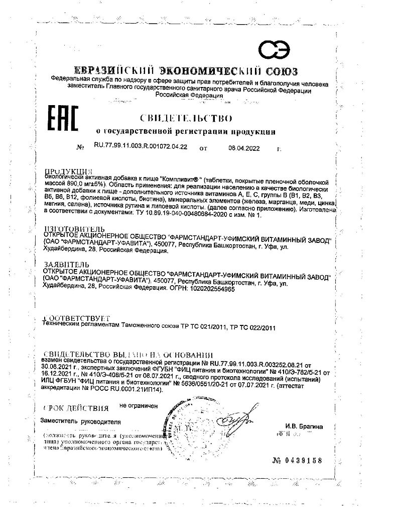 Документы Компливит таблетки покрыт.плен.об. массой 890 мг 30 шт