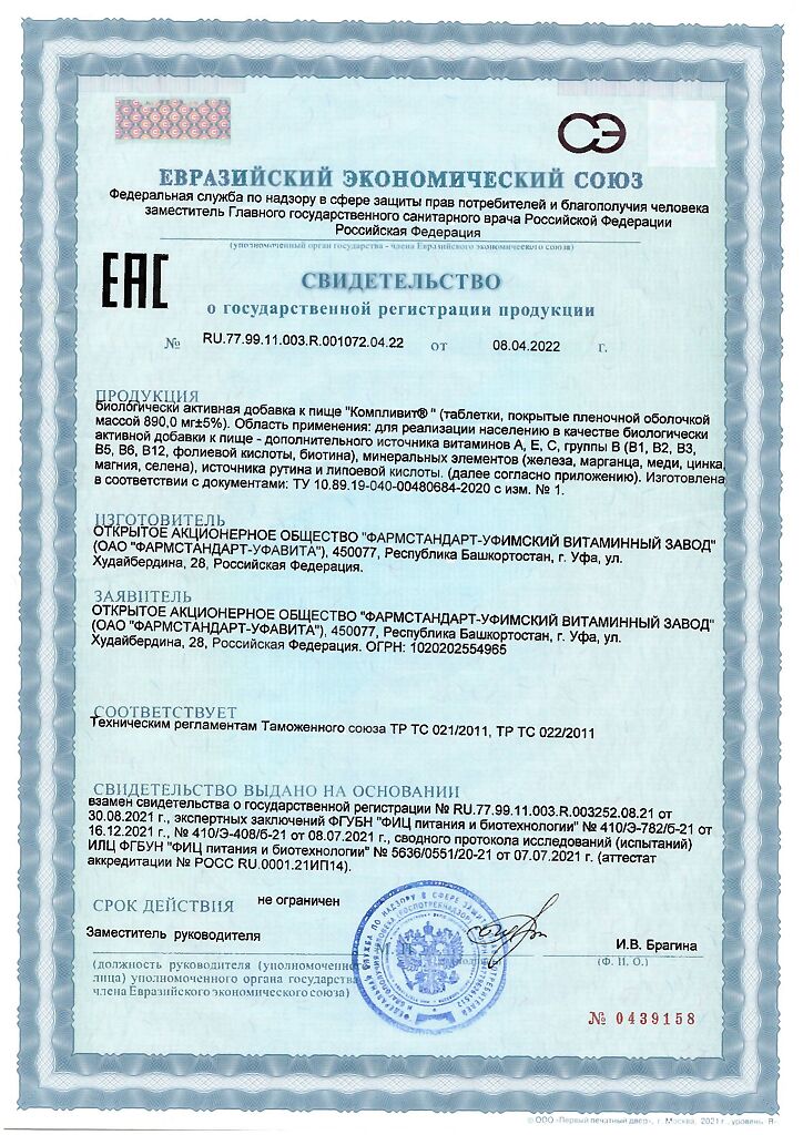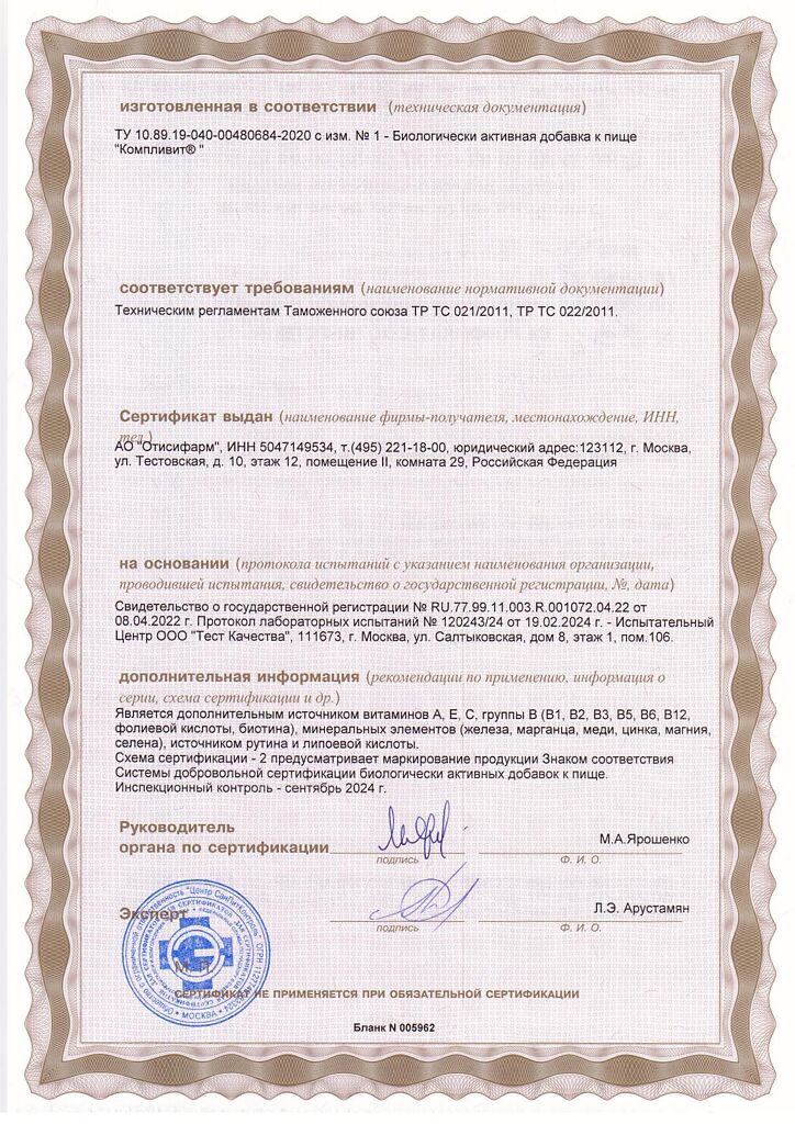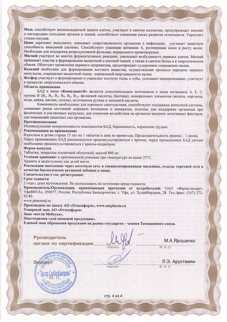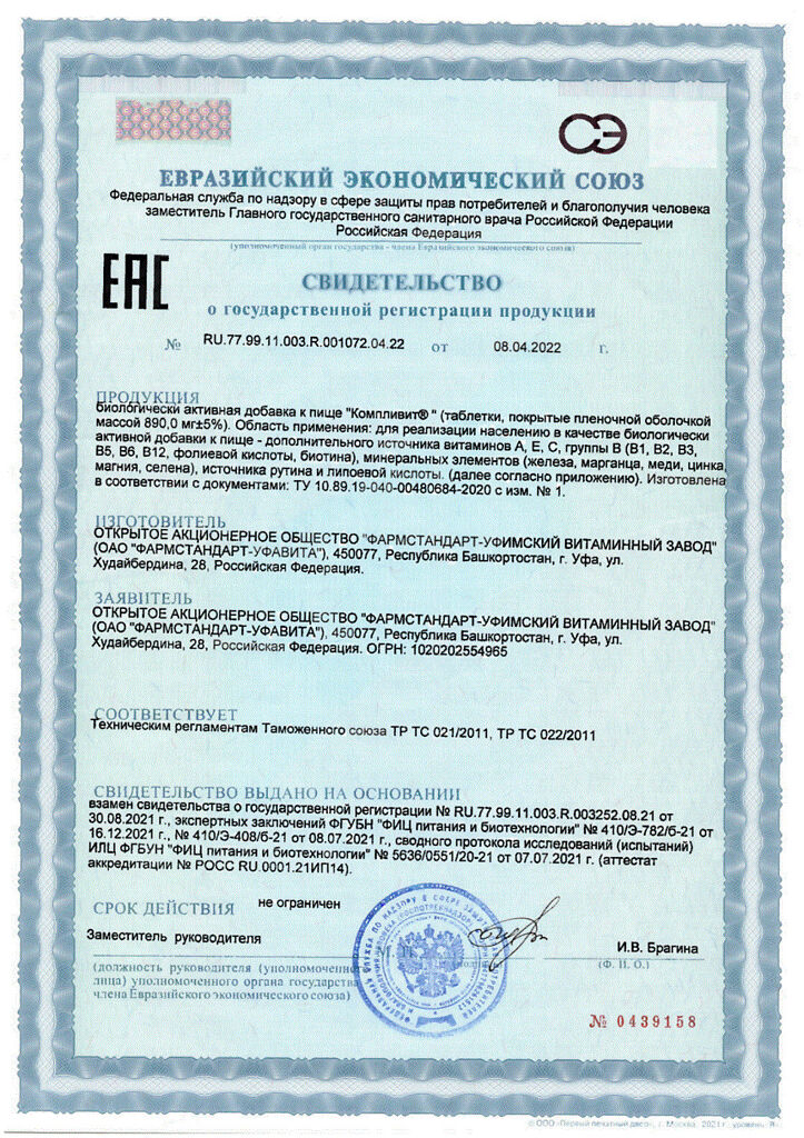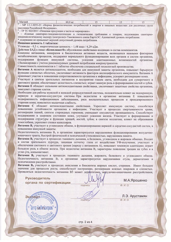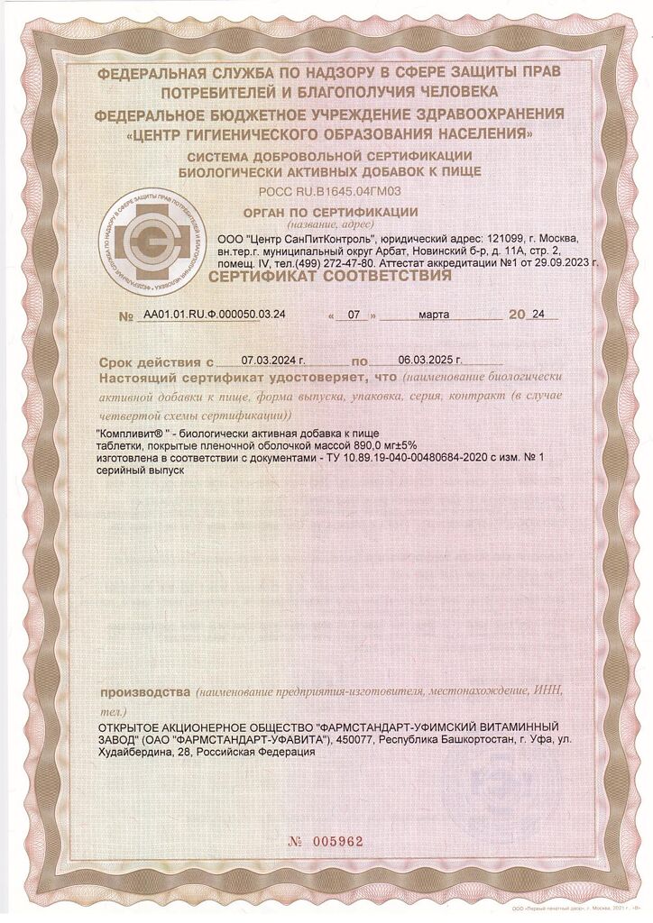 Документы Компливит таблетки покрыт.плен.об. массой 890 мг 30 шт