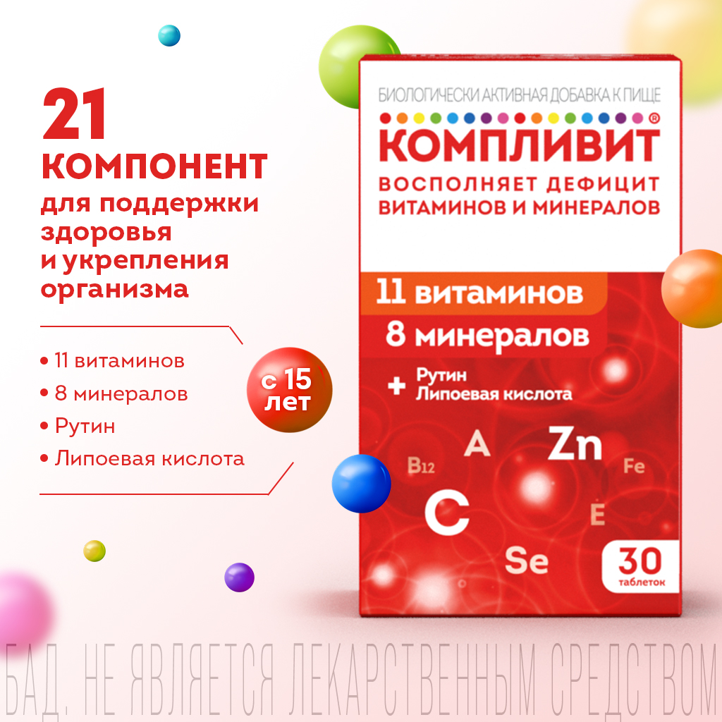 Компливит таблетки покрыт.плен.об. массой 890 мг 30 шт: 30 отзывов покупателей и фармацевтов