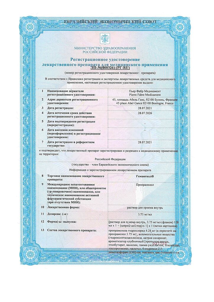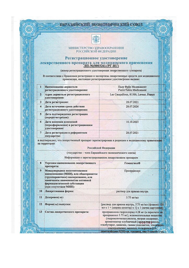 Действующее вещество: Пропранолол