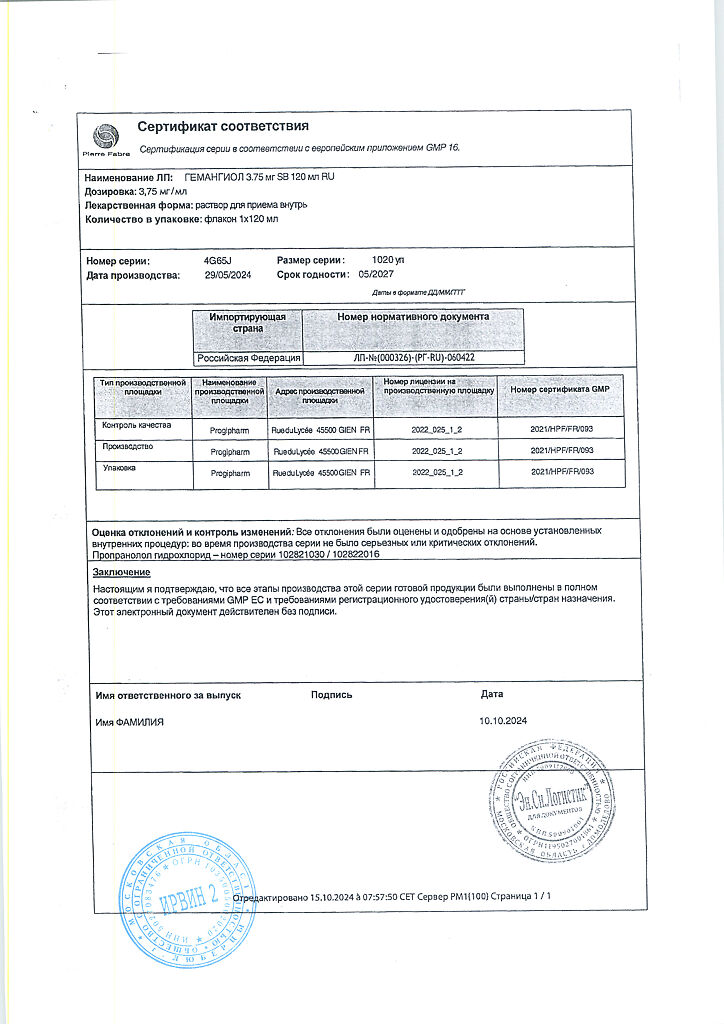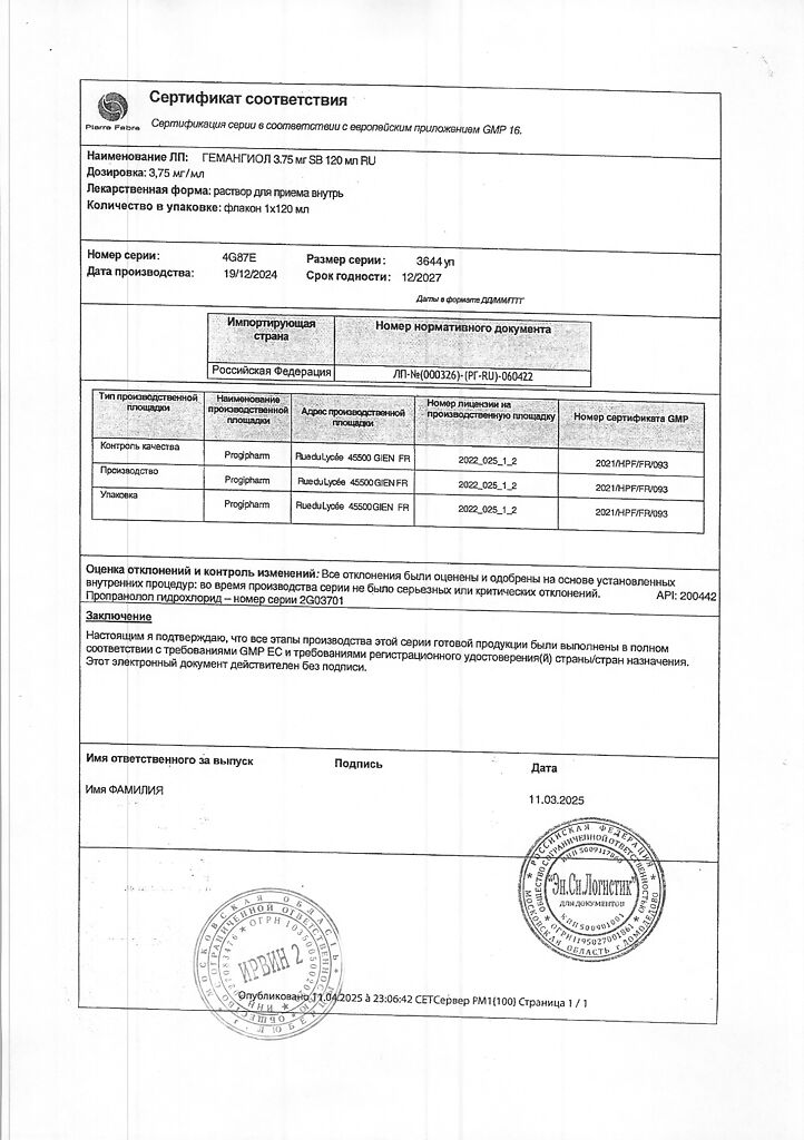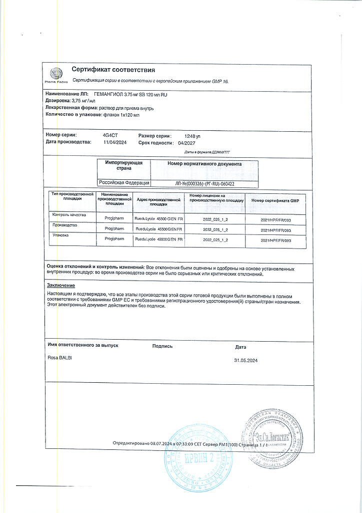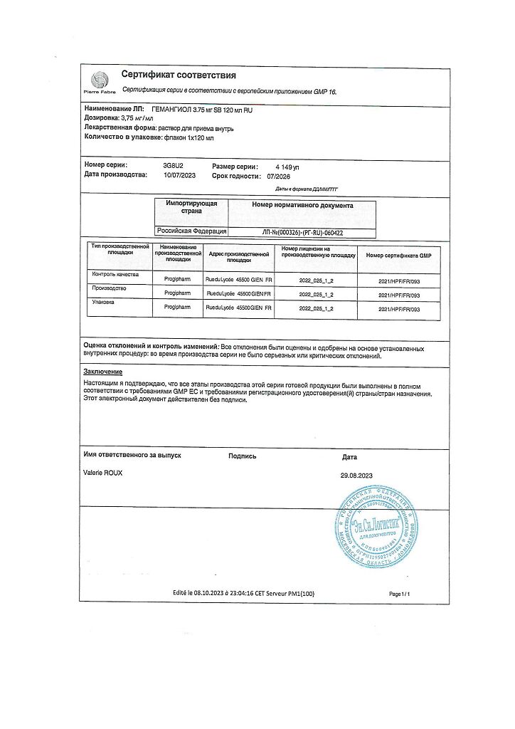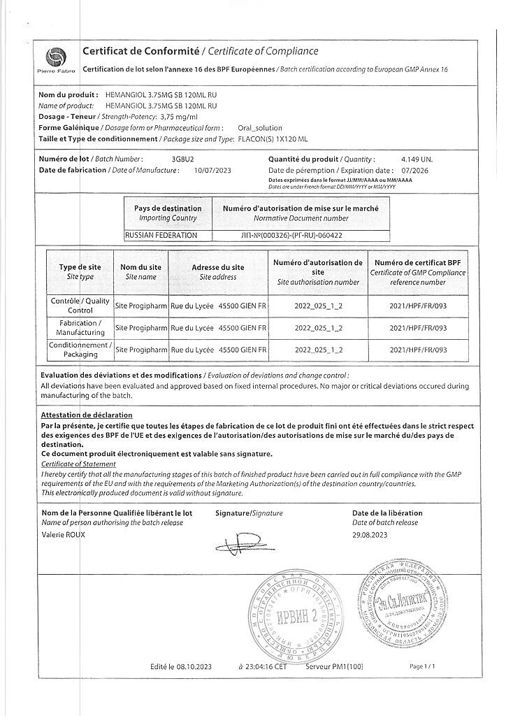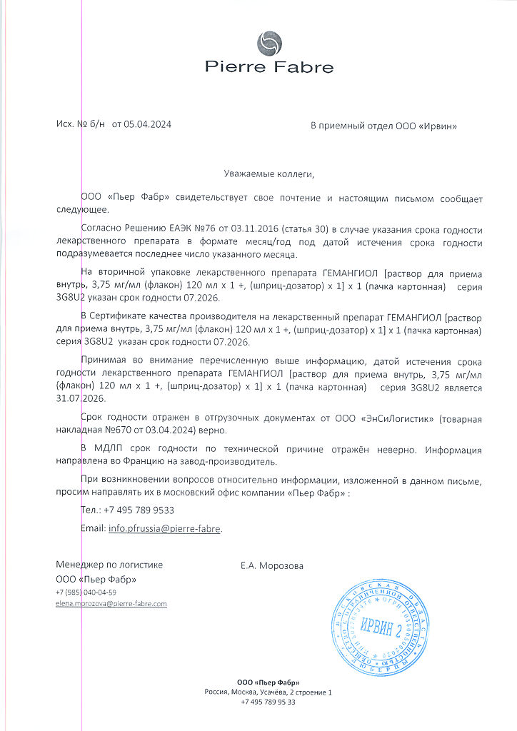 Производитель: Пьер Фабр Медикамент, Франция