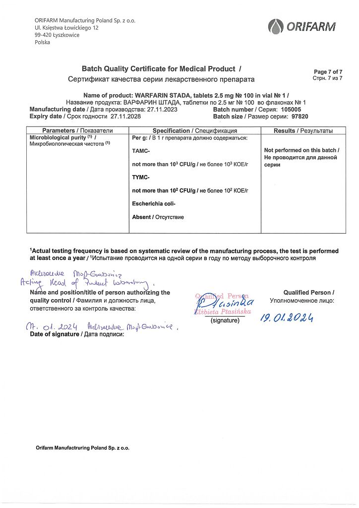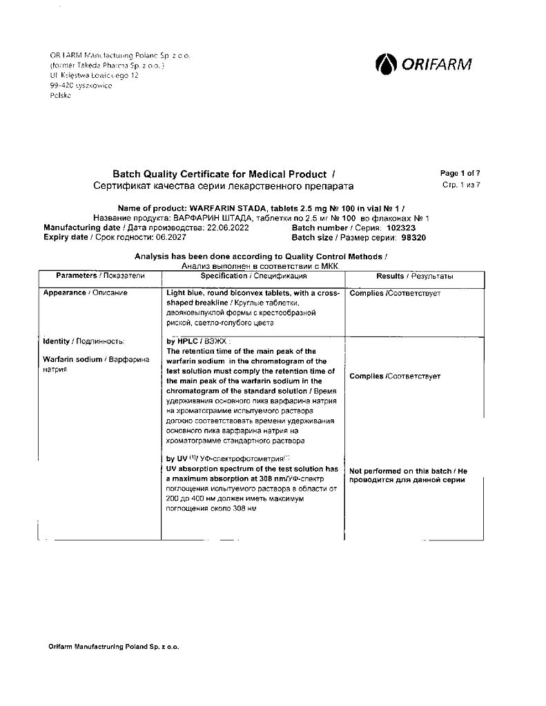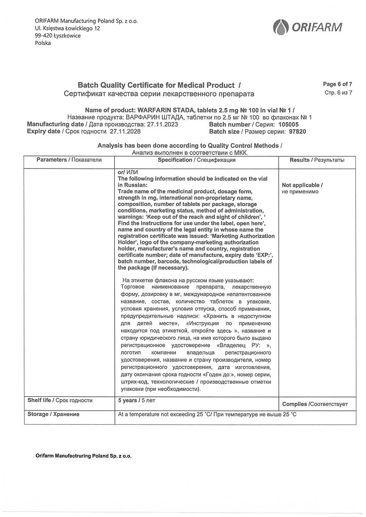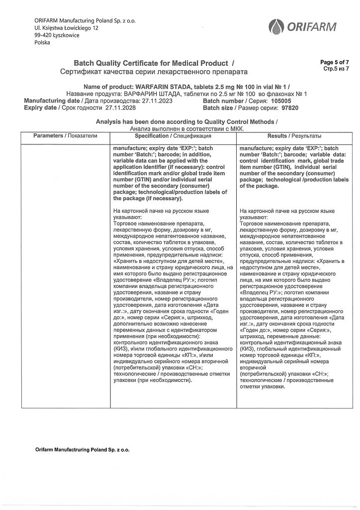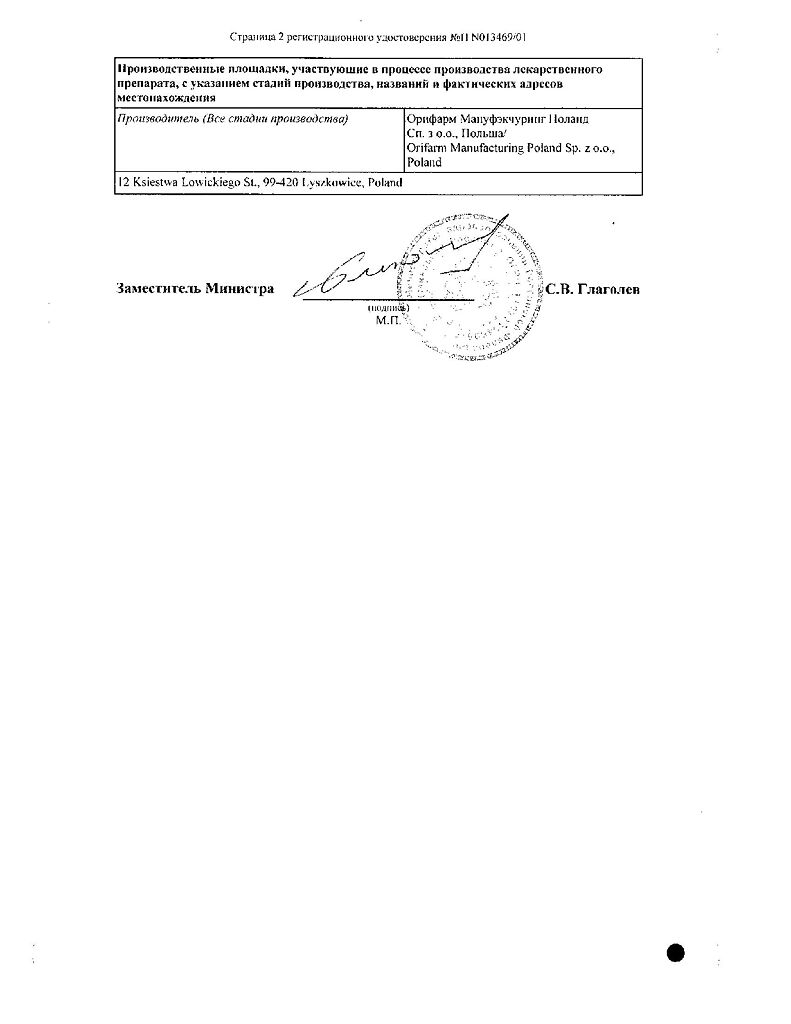 Производитель: Орифарм Мануфэкчуринг Поланд Сп. з.о.о., Польша