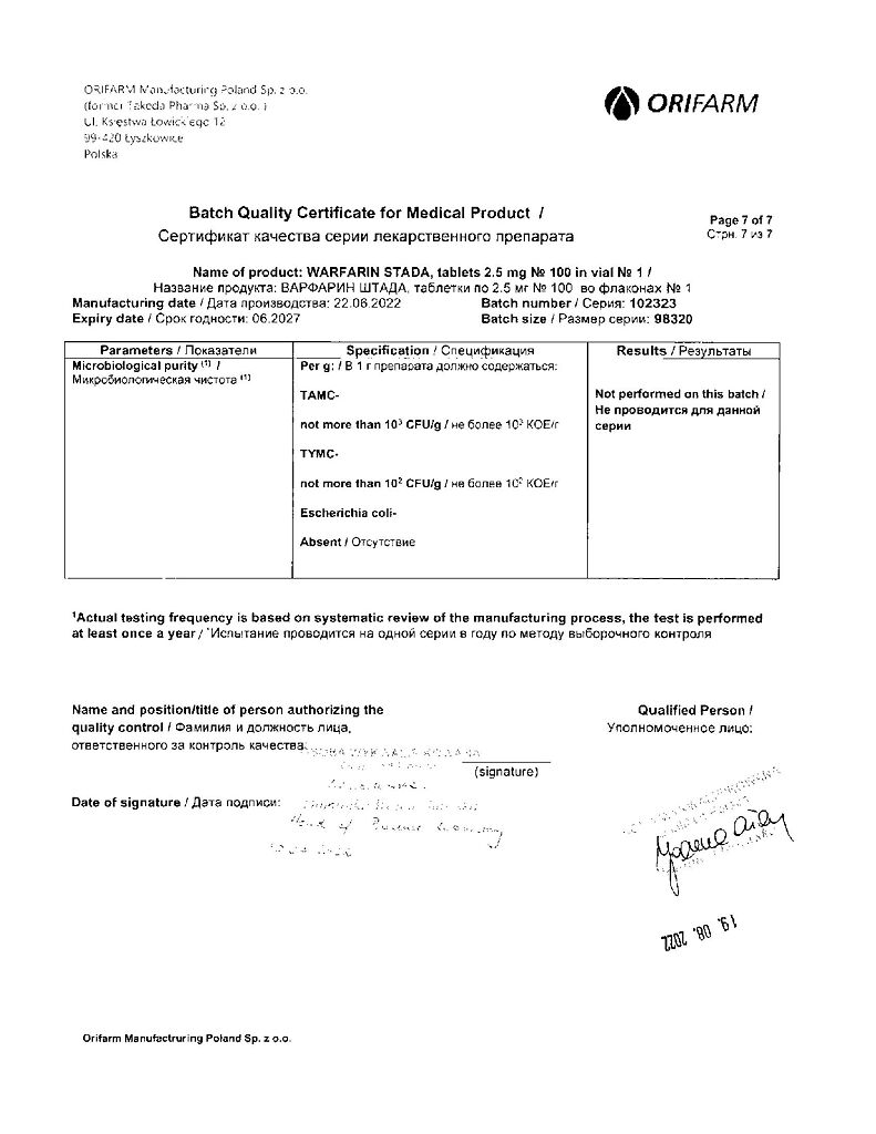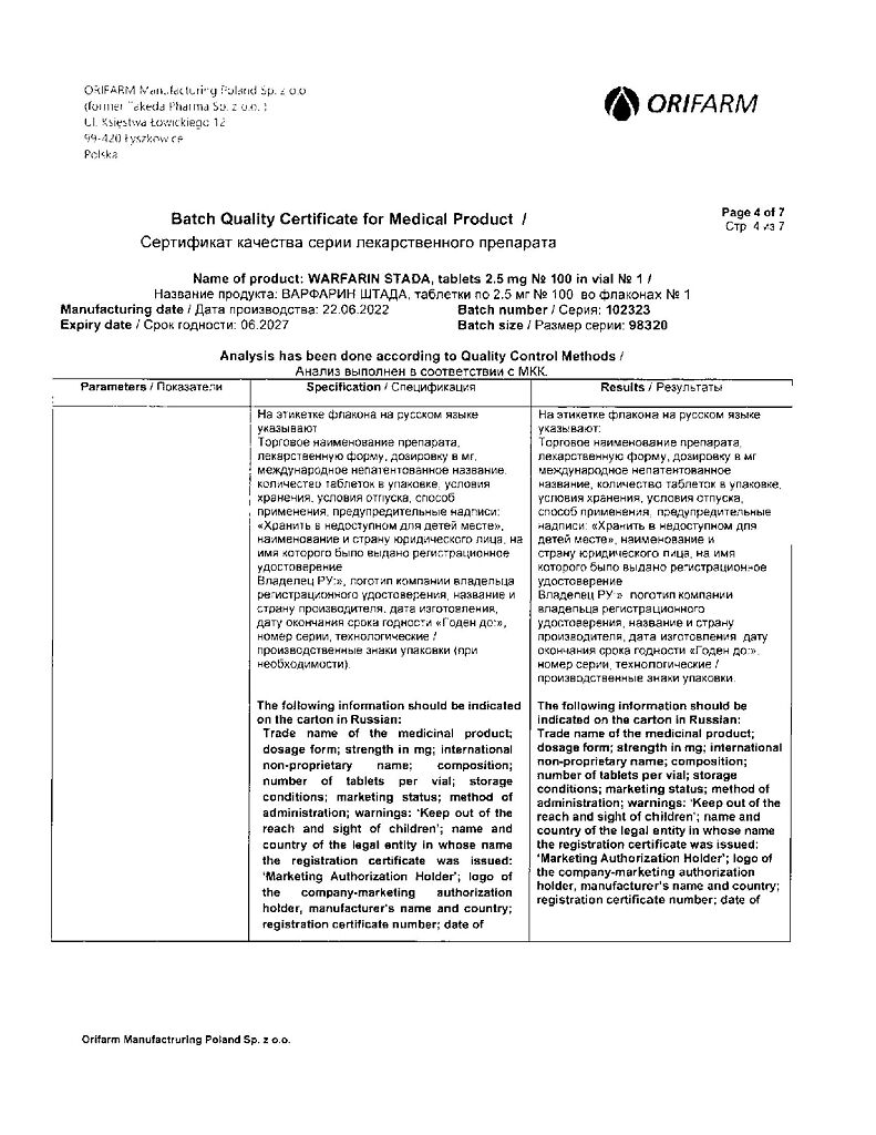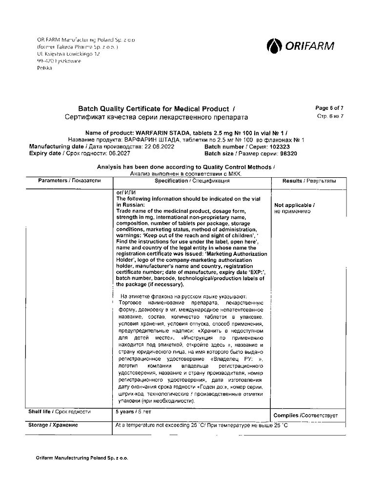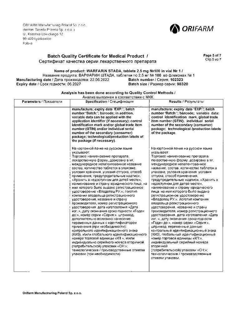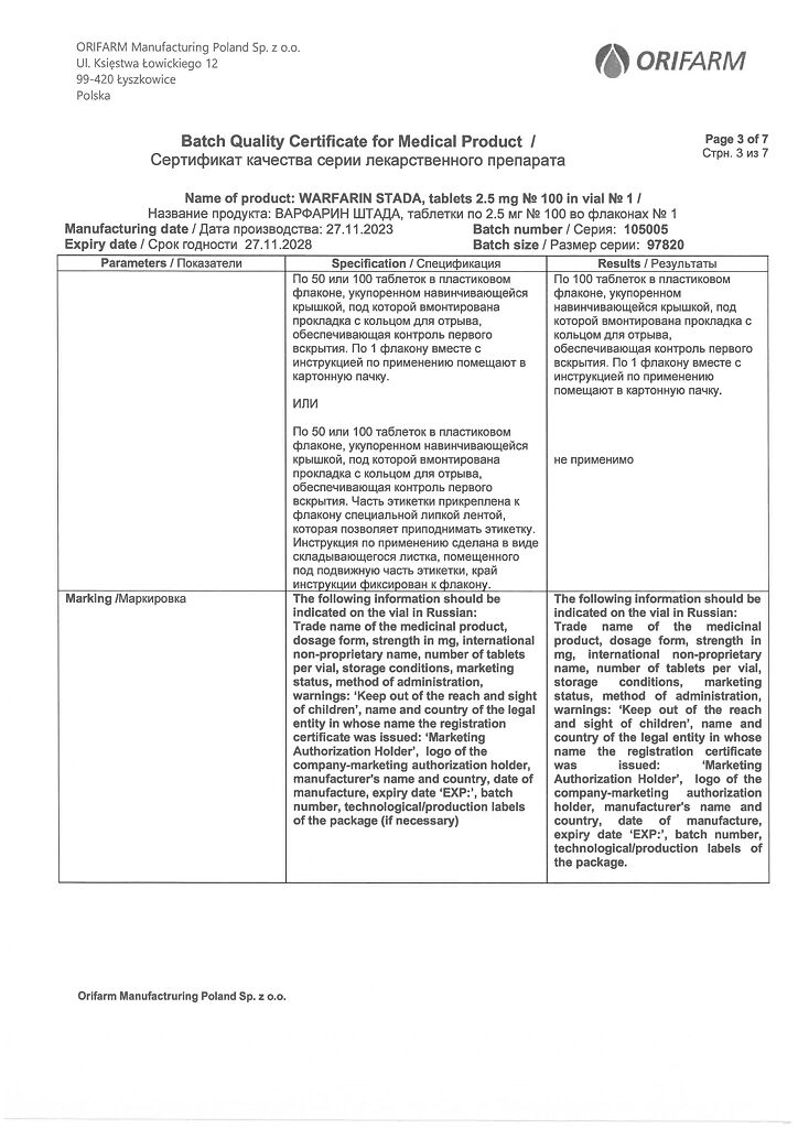 Производитель: Орифарм Мануфэкчуринг Поланд Сп. з.о.о., Польша