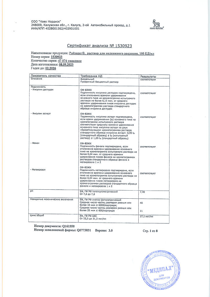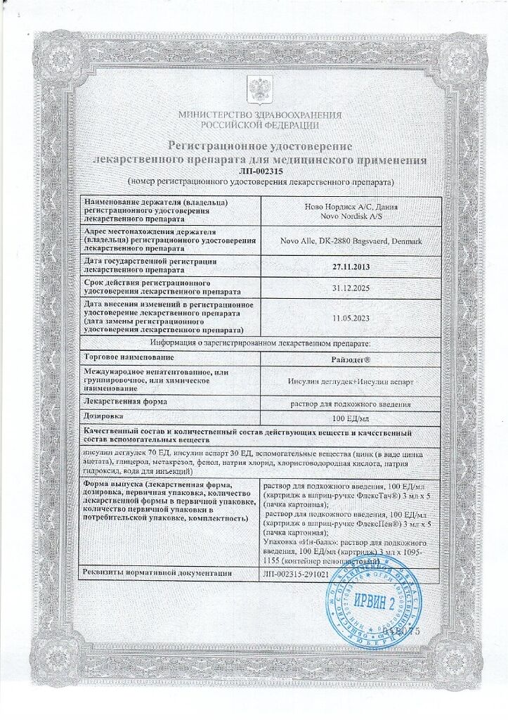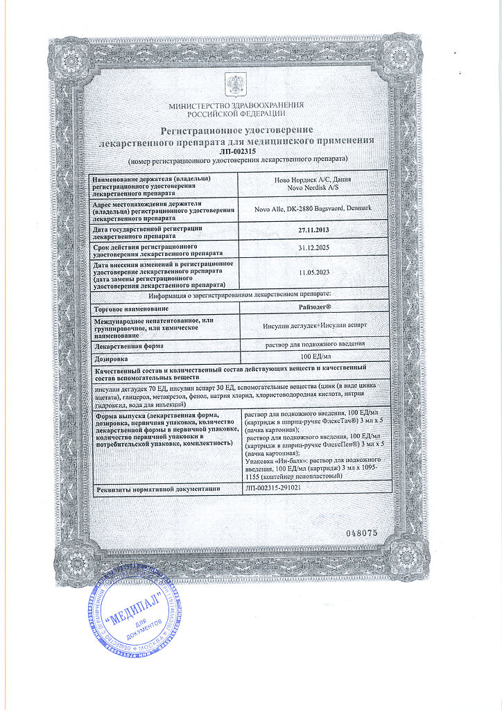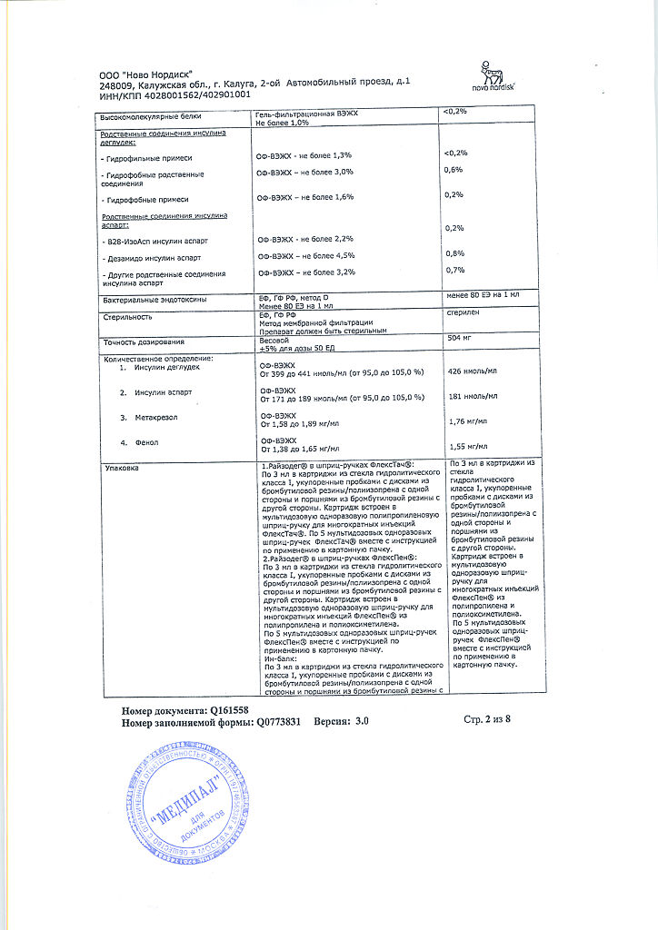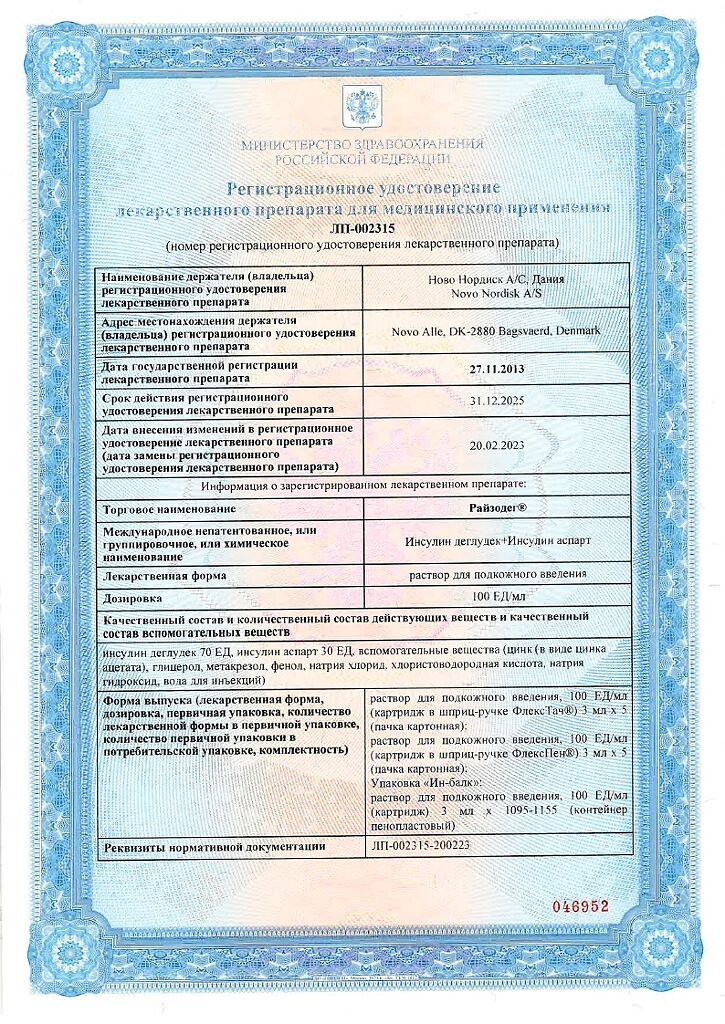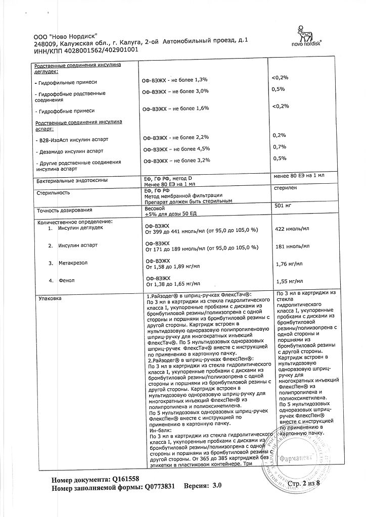 Действующее вещество: Инсулин деглудек, Инсулин аспарт