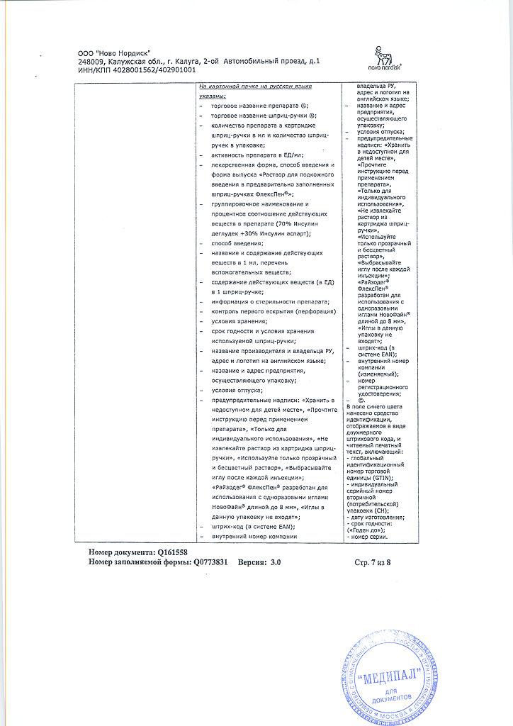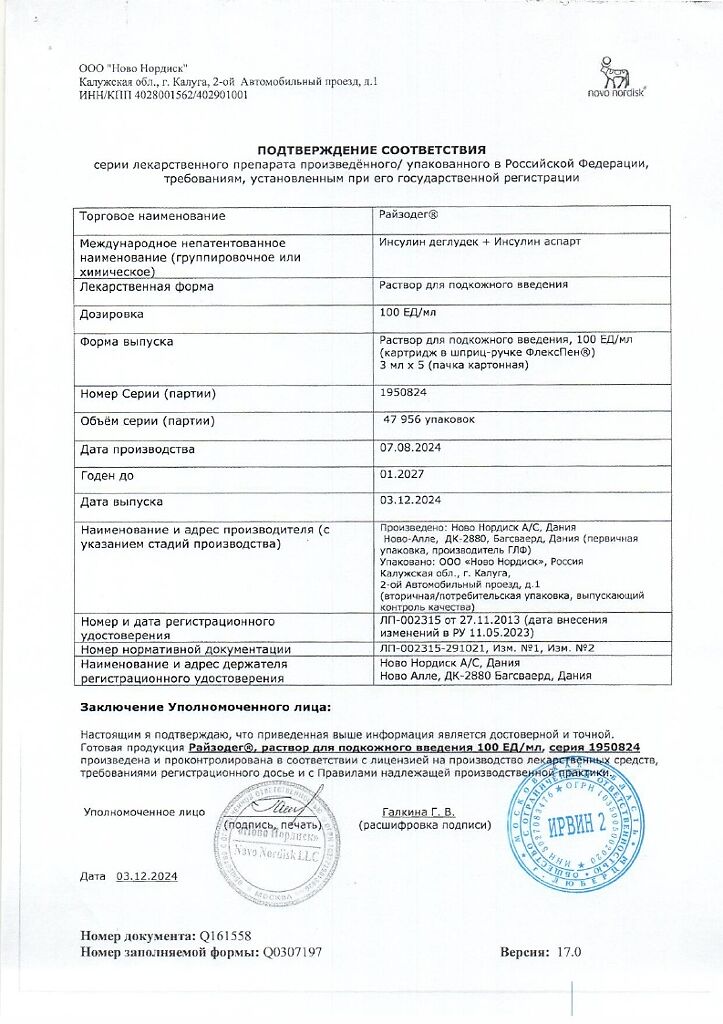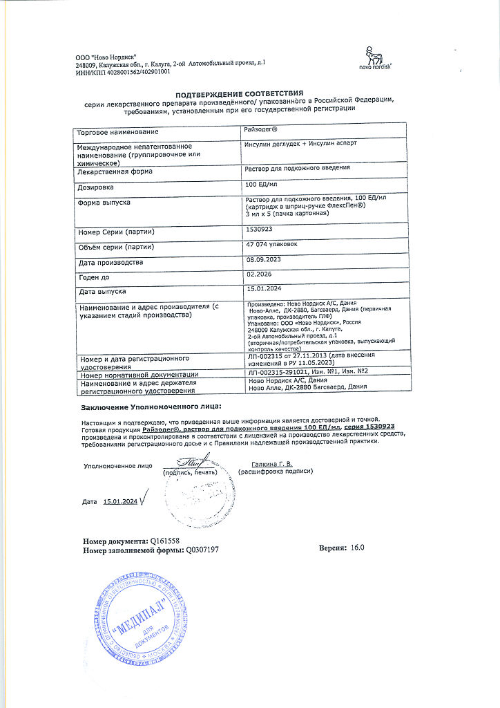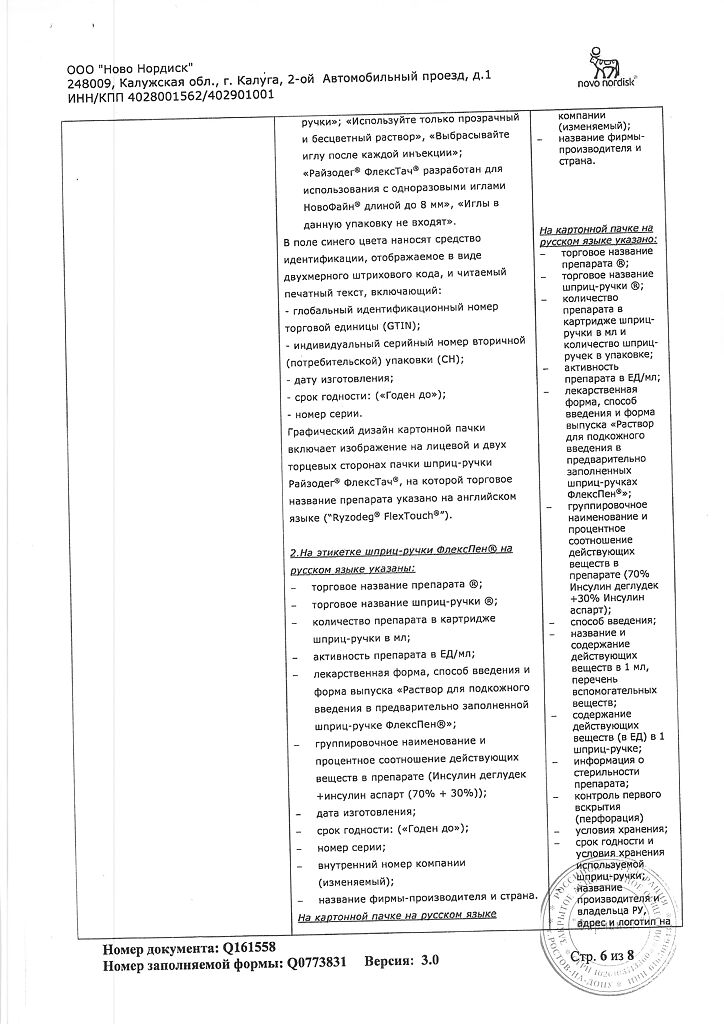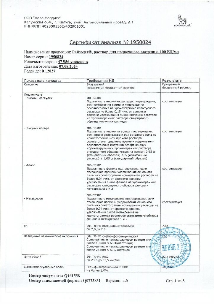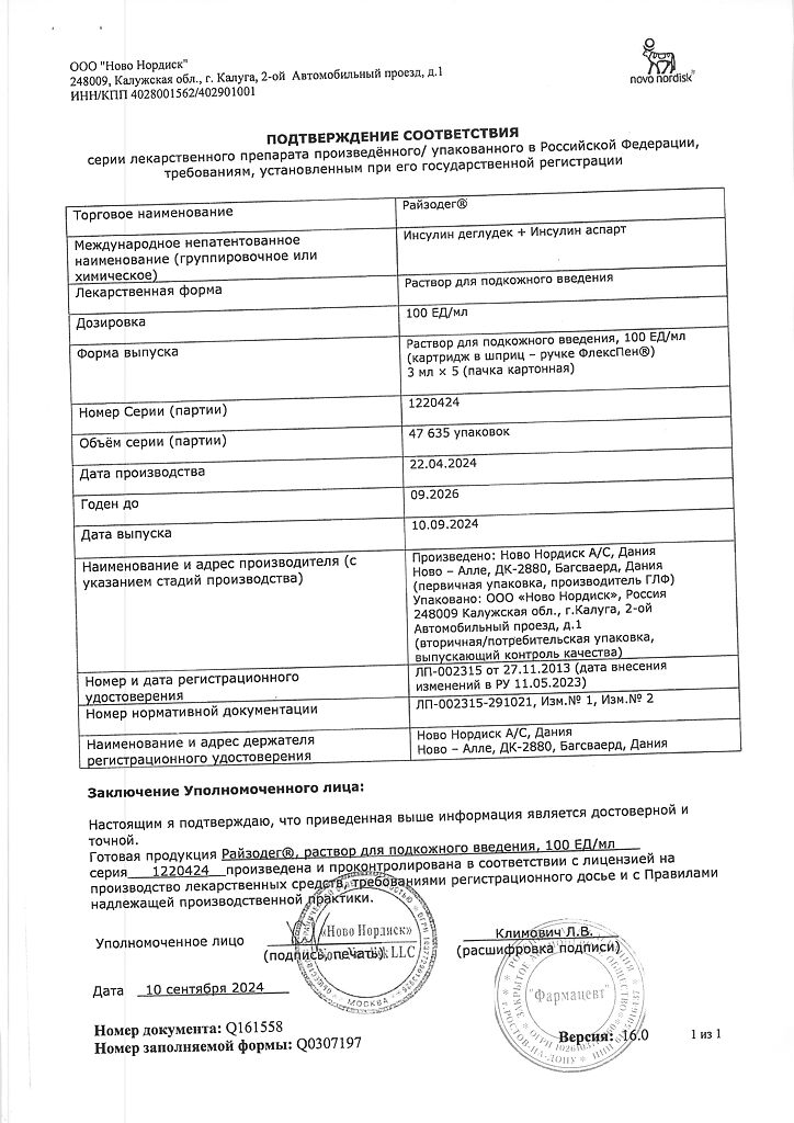 Действующее вещество: Инсулин деглудек, Инсулин аспарт