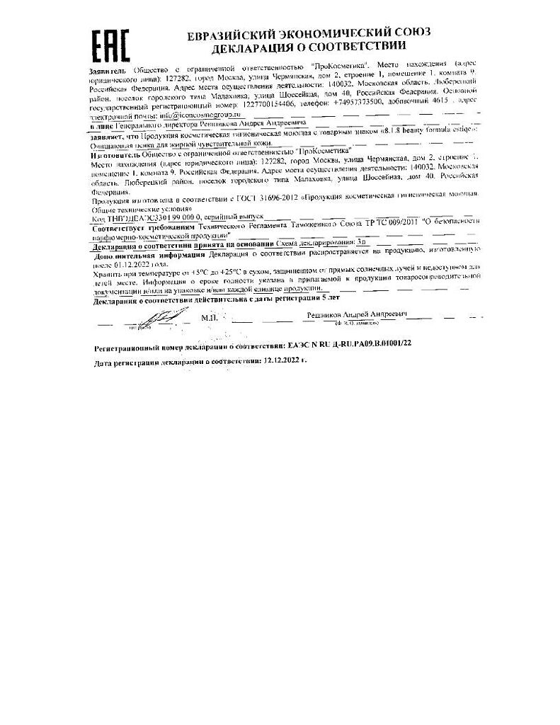 Документы 8.1.8 beauty formula Очищающая пенка для жирной чувствительной кожи 160 мл 1 шт