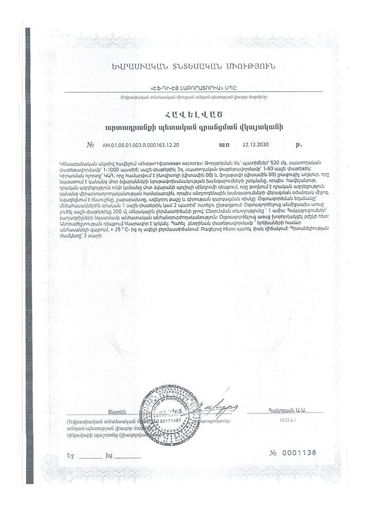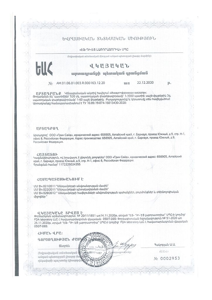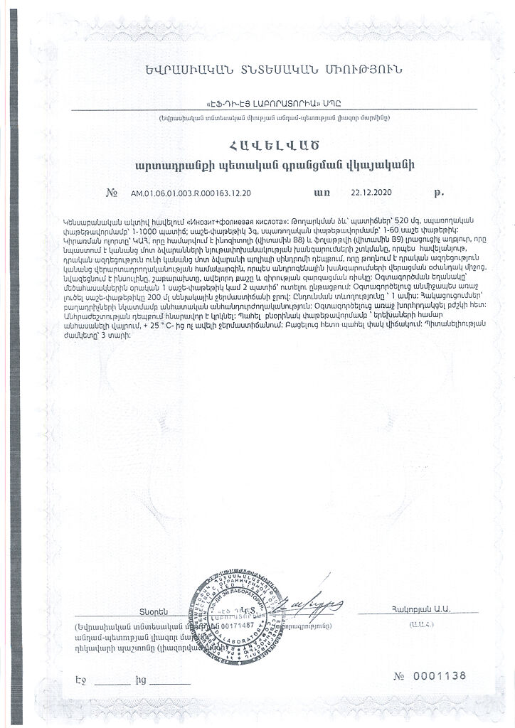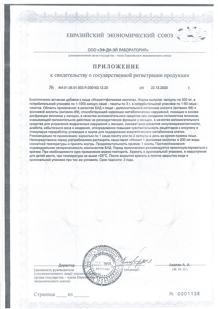 Документы PILULI Инозит+фолиевая кислота капсулы по 520 мг 60 шт