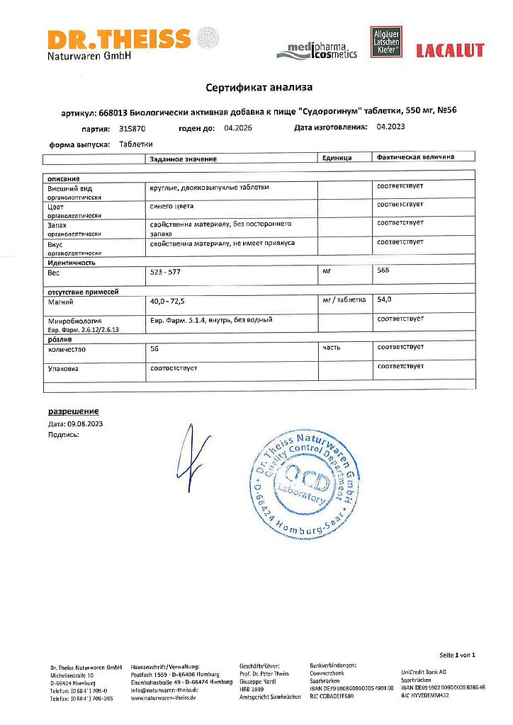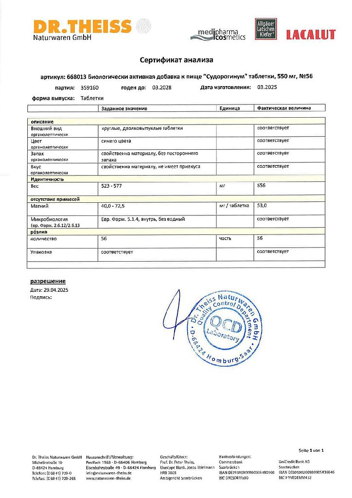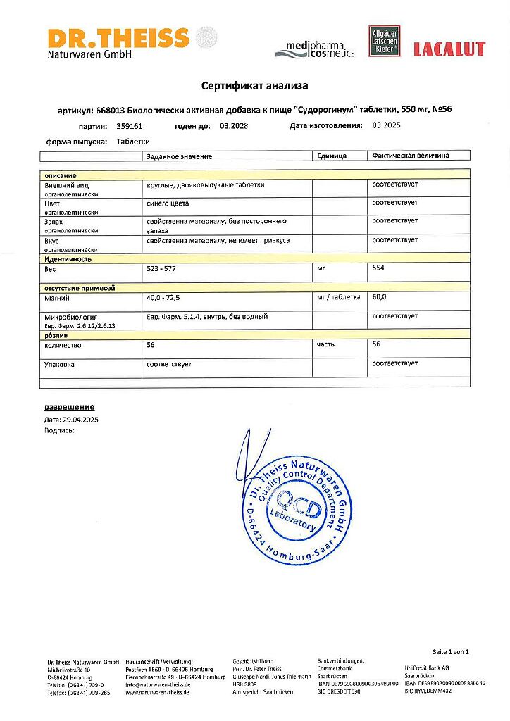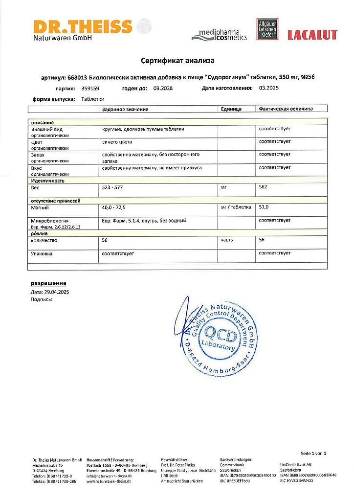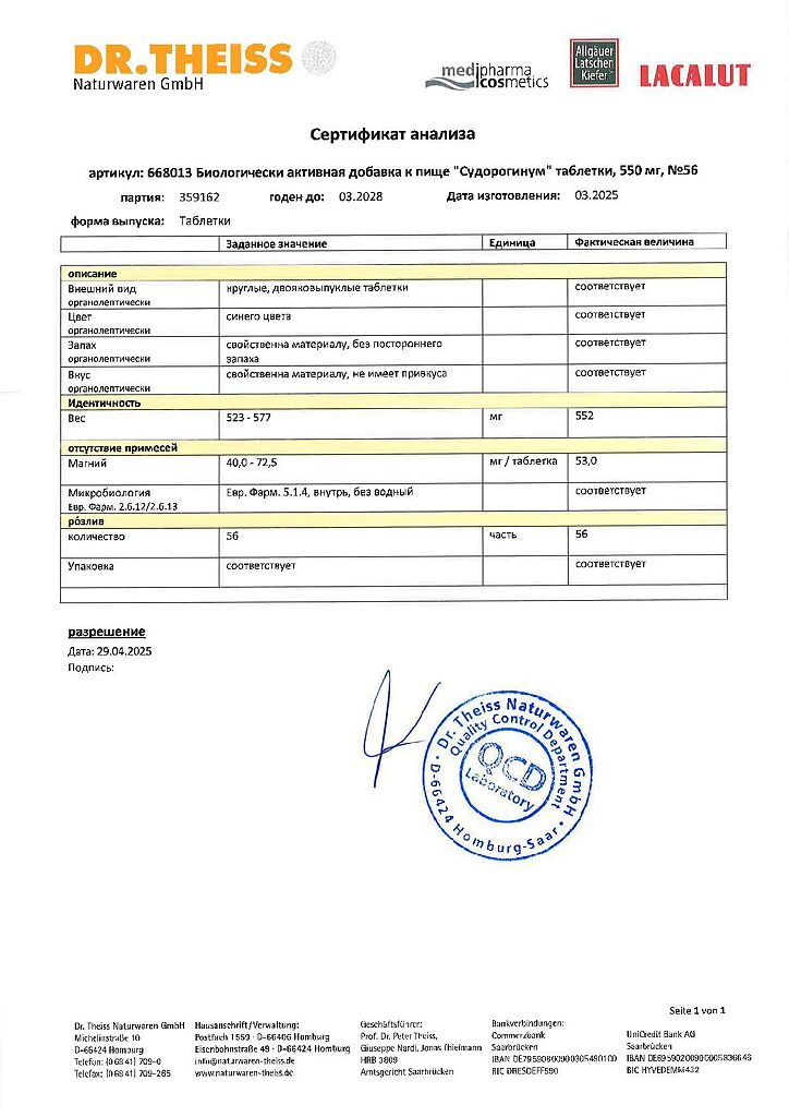 Производитель: Др.Тайсс Натурварен ГмбХ, Германия