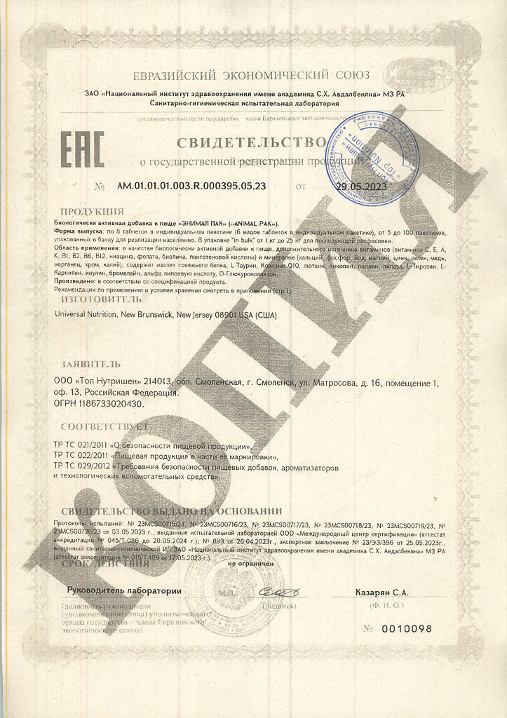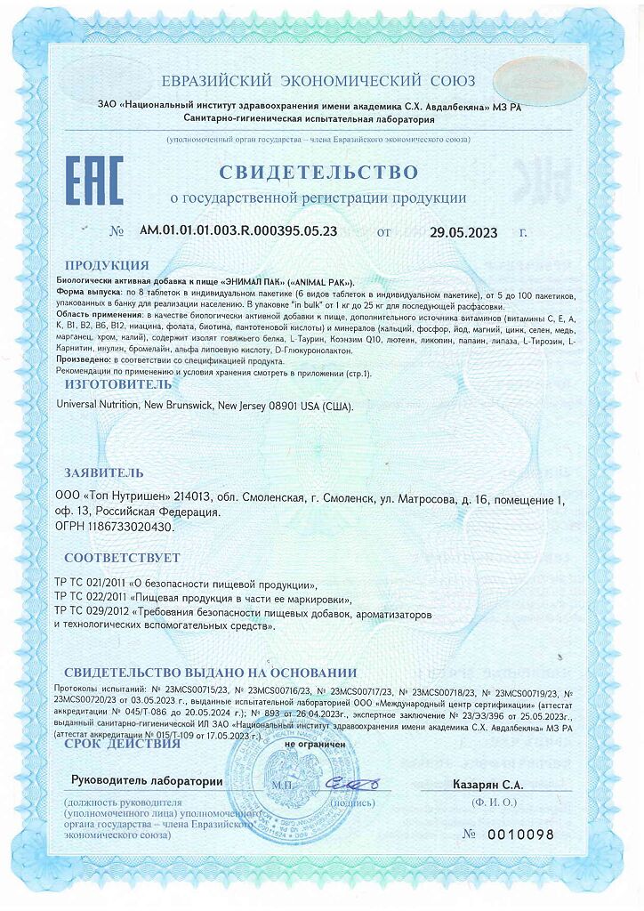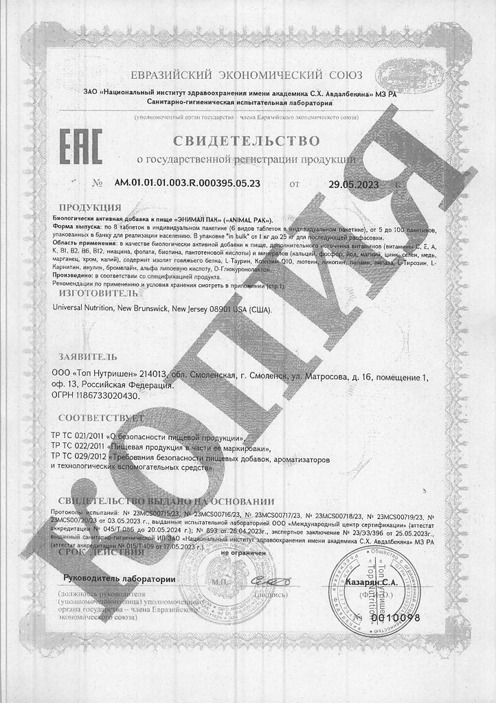 Документы Энимал Пак / Animal Pak Витаминно-минеральный комплекс пакетики по 8 таблеток 1 уп