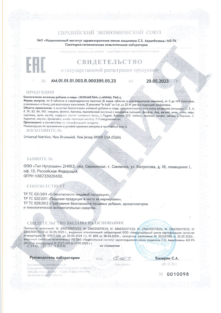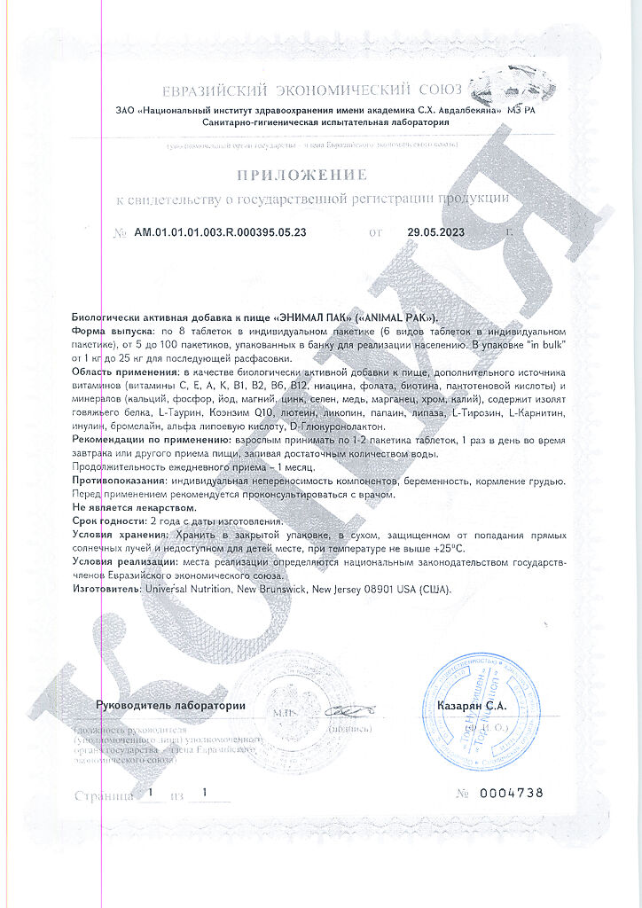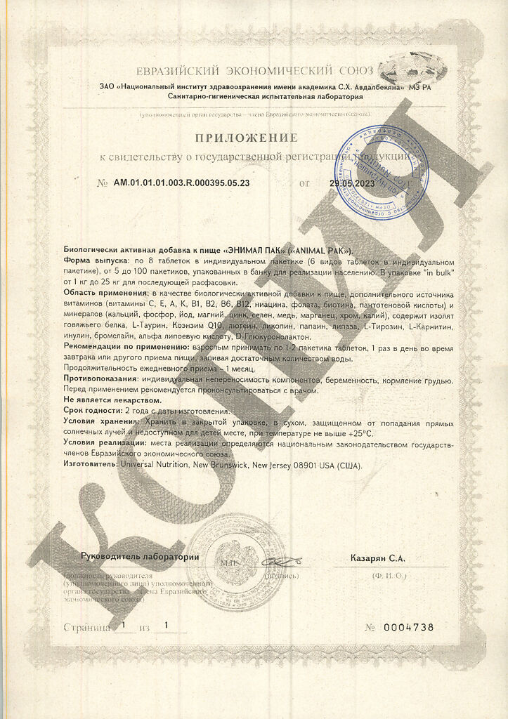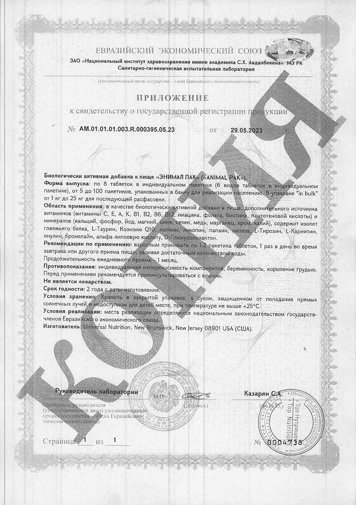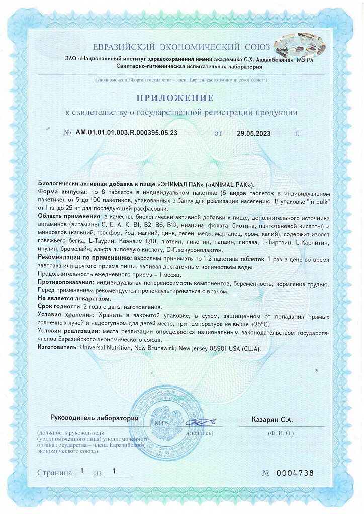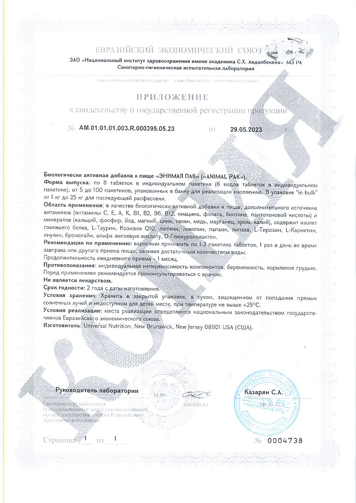 • 📒 Подробная инструкция по применению Энимал Пак / Animal Pak Витаминно-минеральный комплекс пакетики по 8 таблеток 1 уп