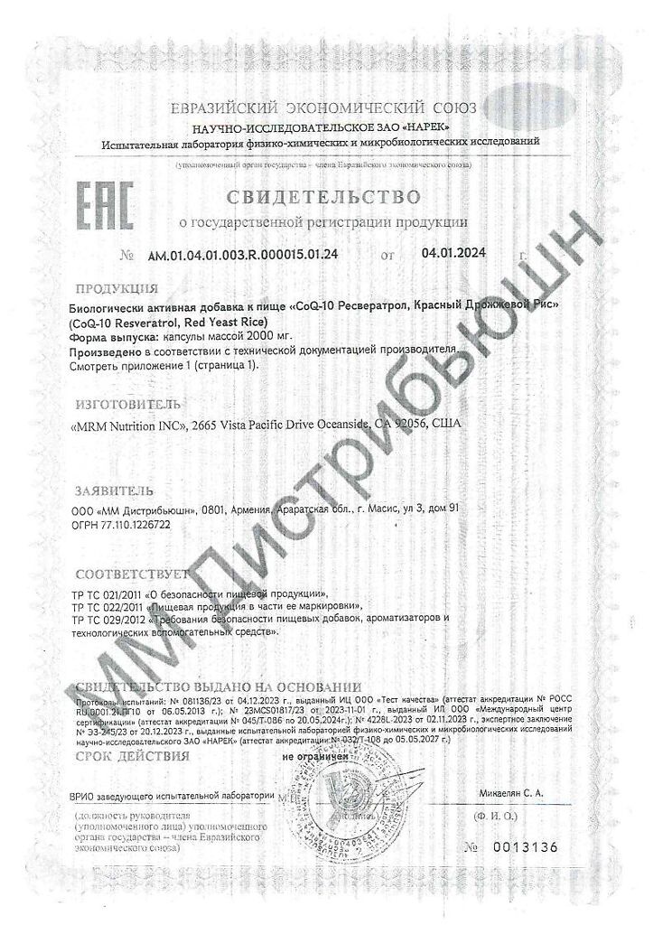 Все варианты MRM CoQ-10 Ресвератрол Красный Дрожжевой Рис