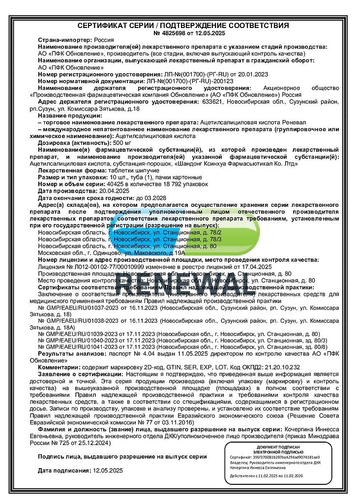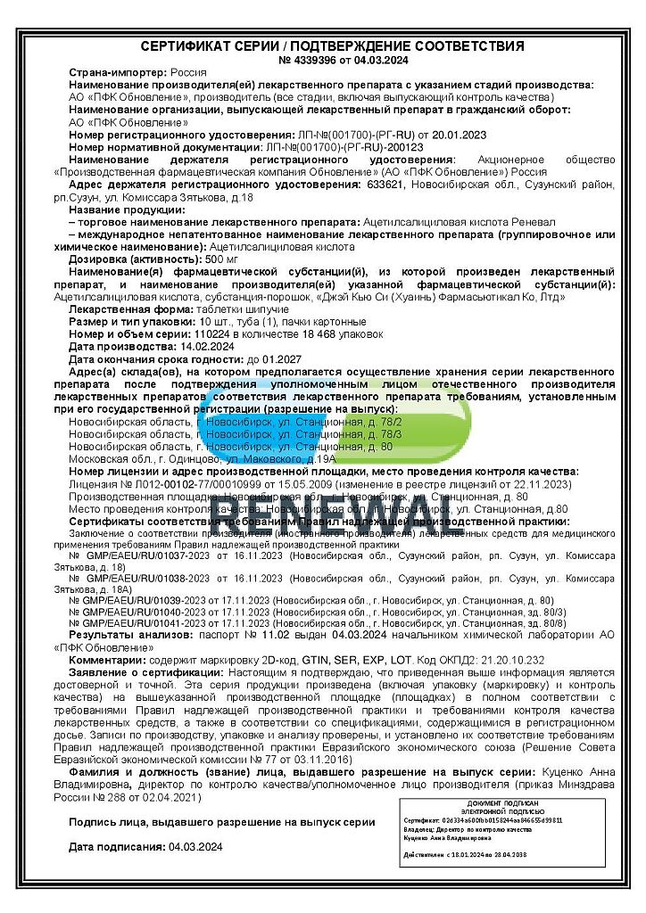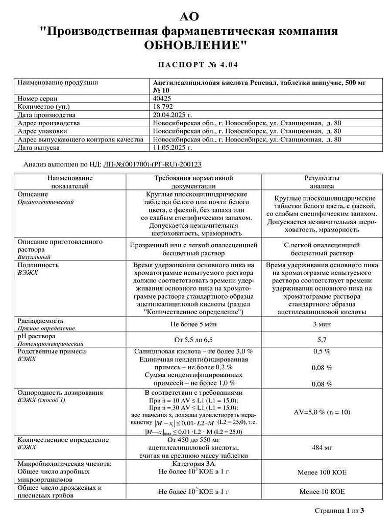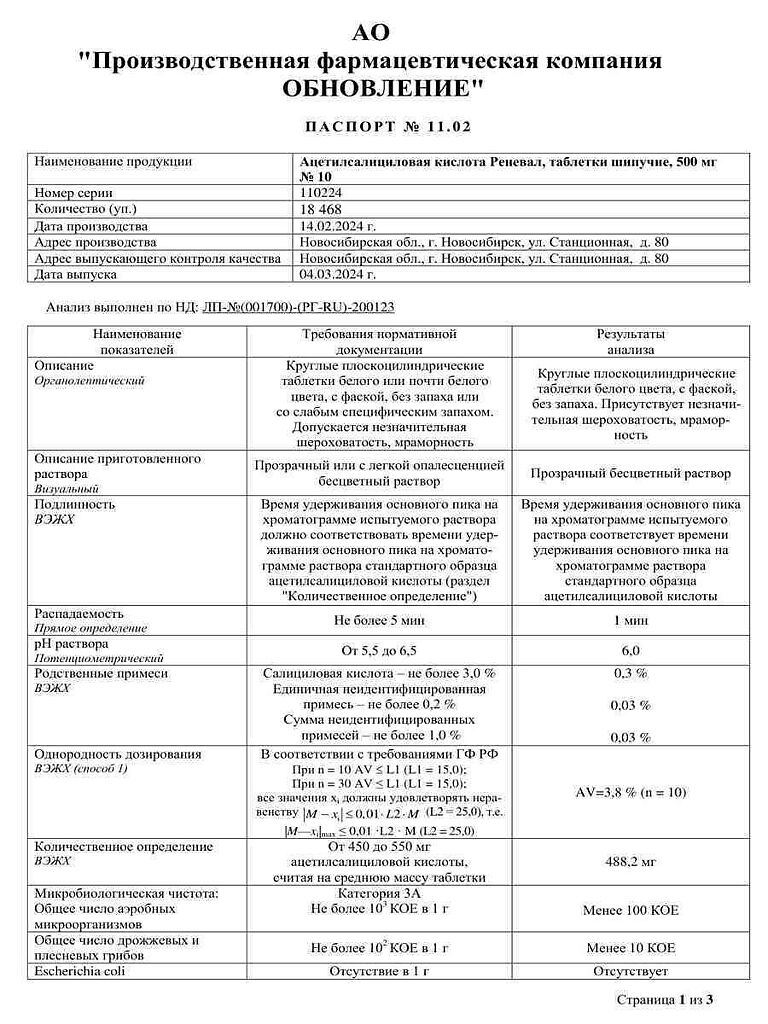 Действующее вещество: Ацетилсалициловая кислота, [Аскорбиновая кислота]