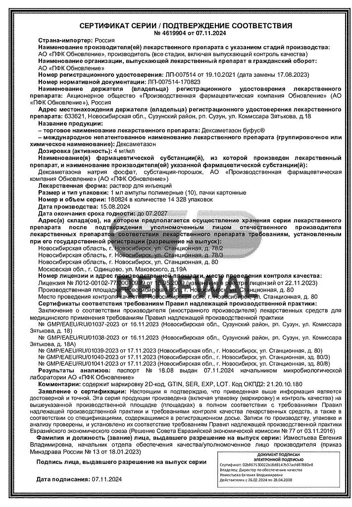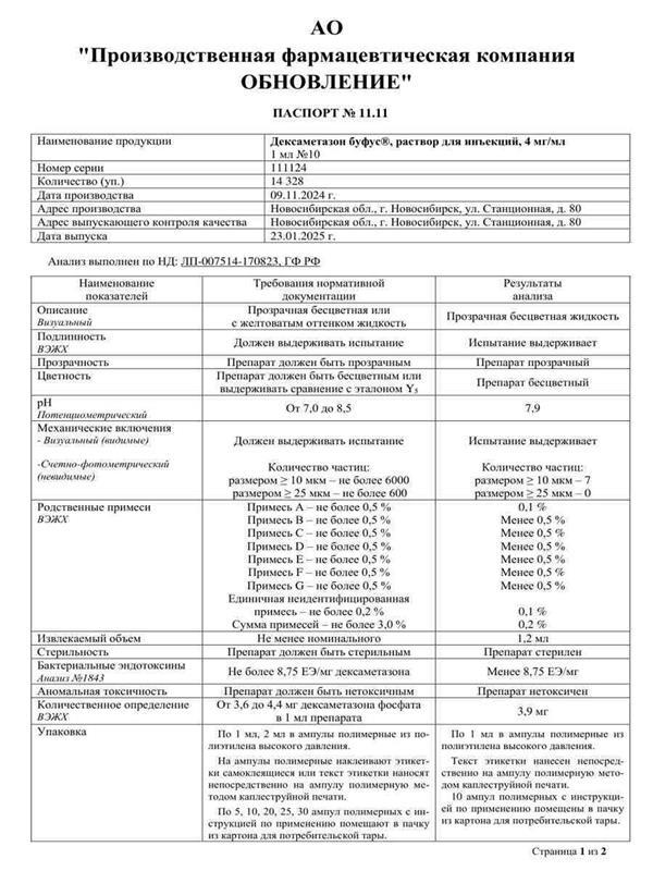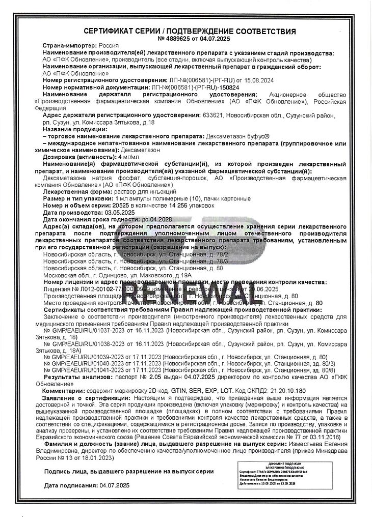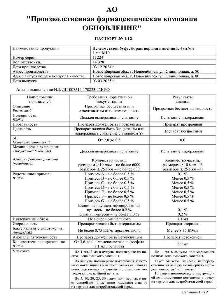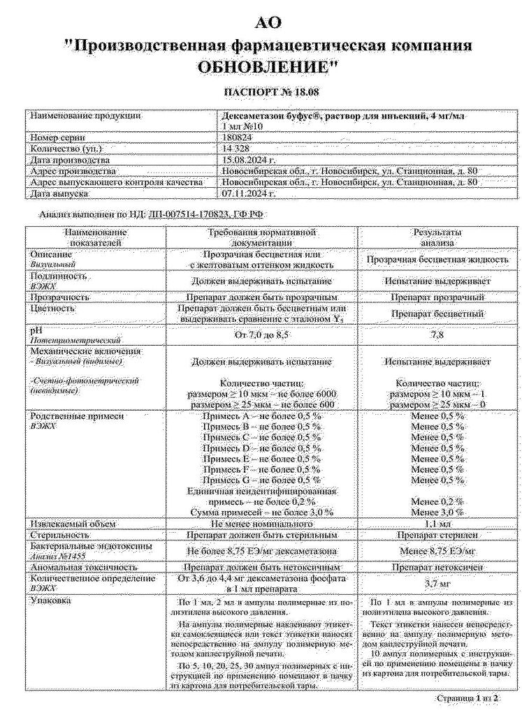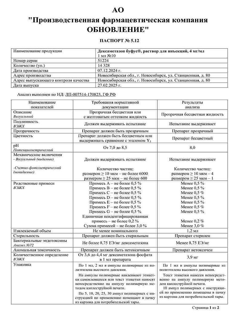 Действующее вещество: Дексаметазон