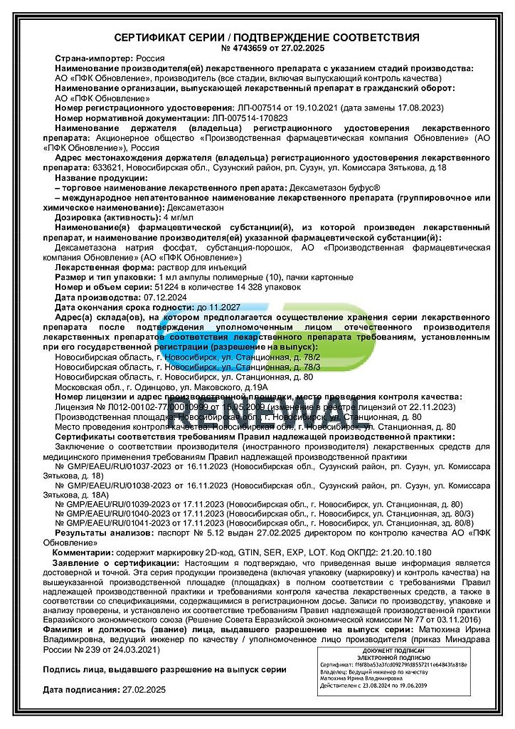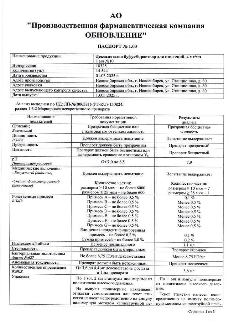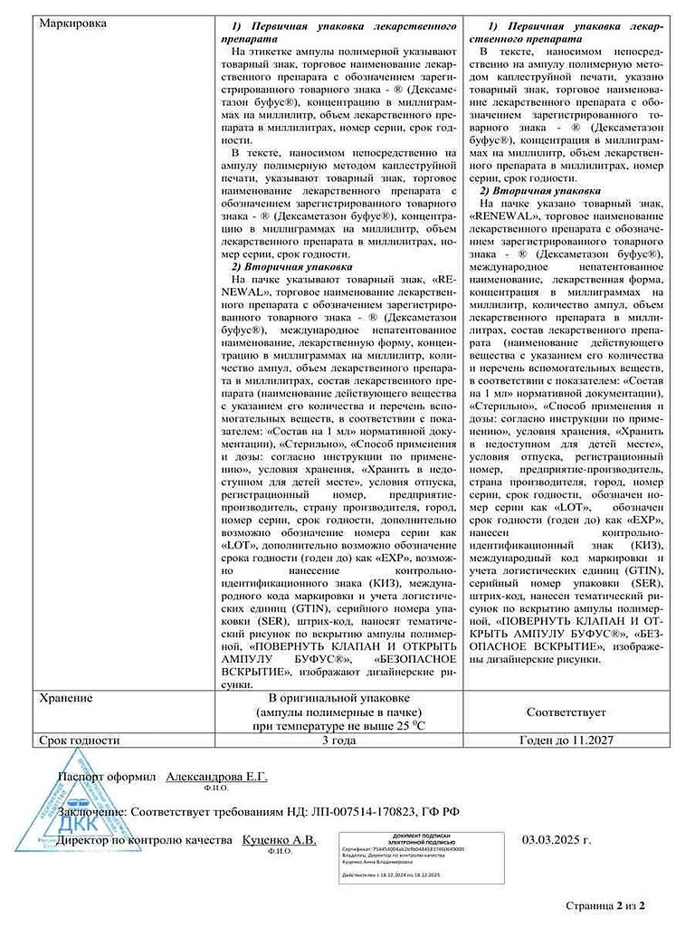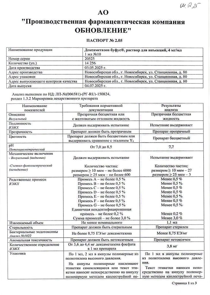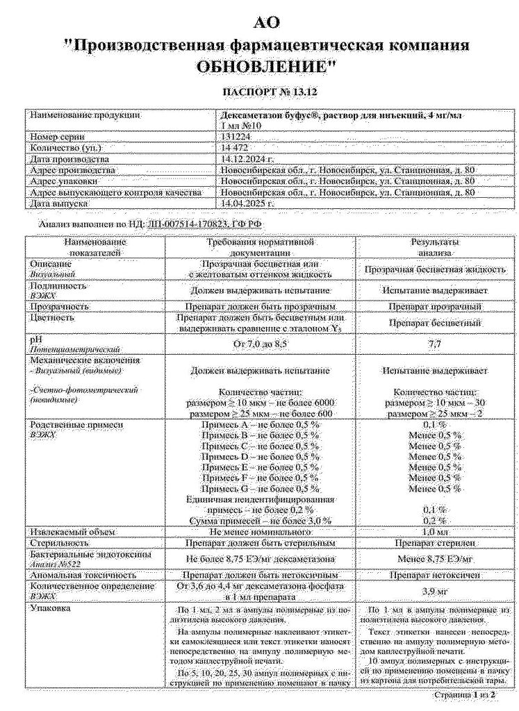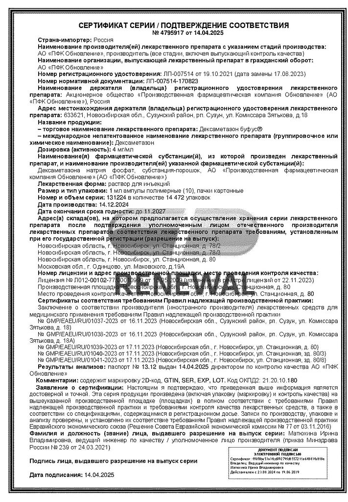 Действующее вещество: Дексаметазон