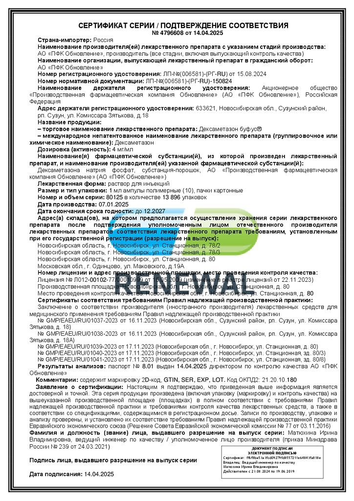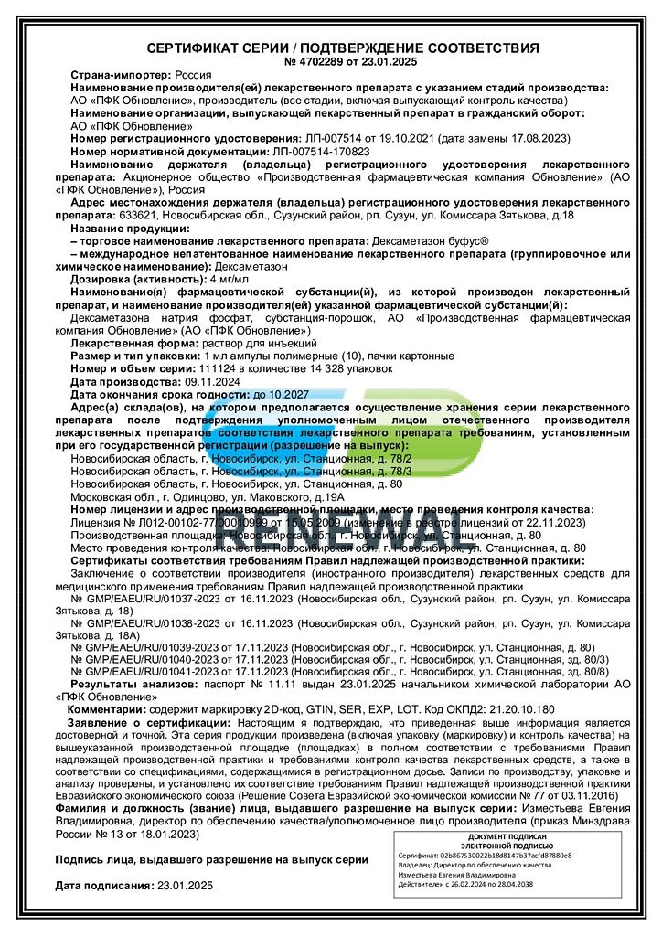 Производитель: Обновление ПФК АО, Россия