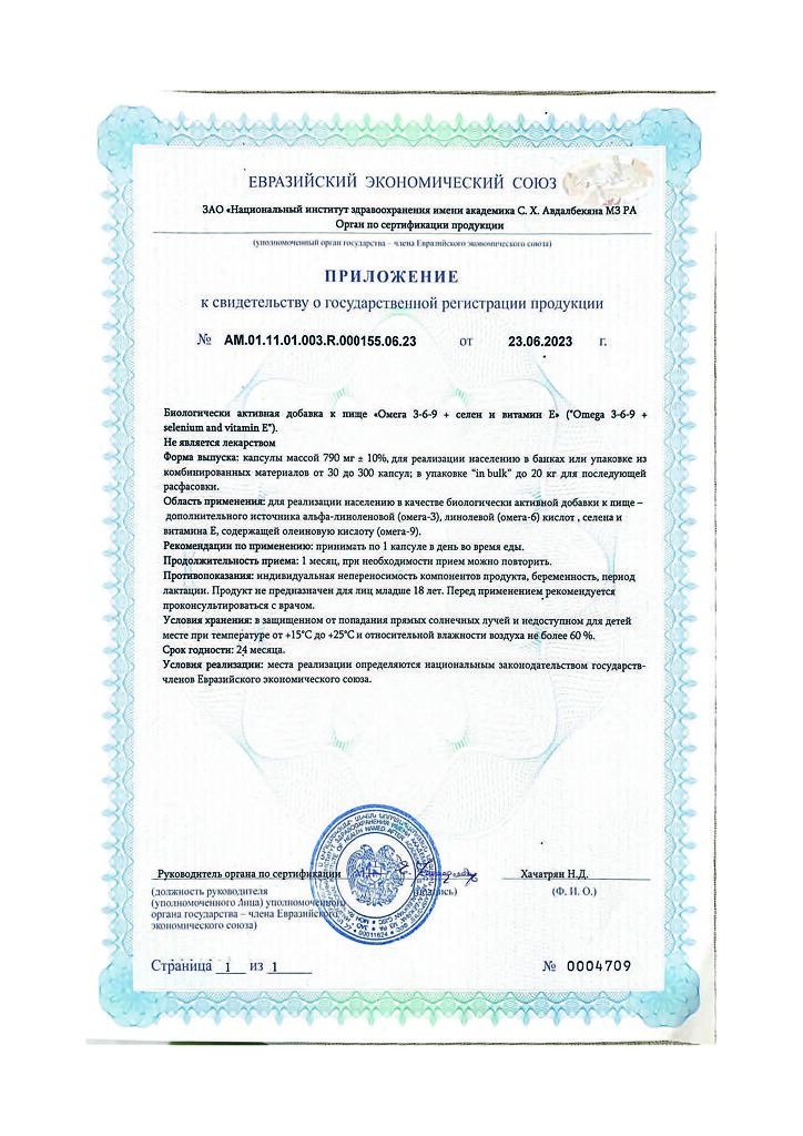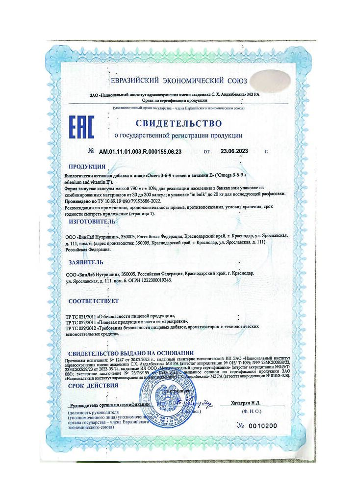 Документы 1WIN Oмега 3-6-9 + Селен и Витамин Е / Omega 3-6-9 + selenium and vitamin E капсулы массой 790 мг 60 шт