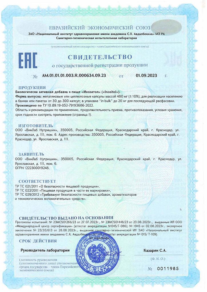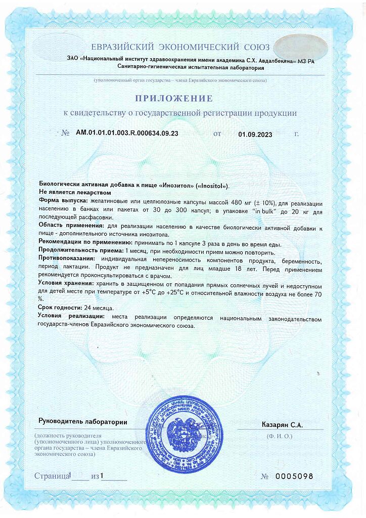 Документы 1WIN Инозитол / Inositol капсулы массой 480 мг 90 шт