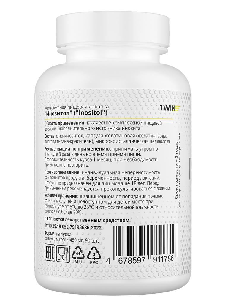 • 📒 Подробная инструкция по применению 1WIN Инозитол / Inositol капсулы массой 480 мг 90 шт