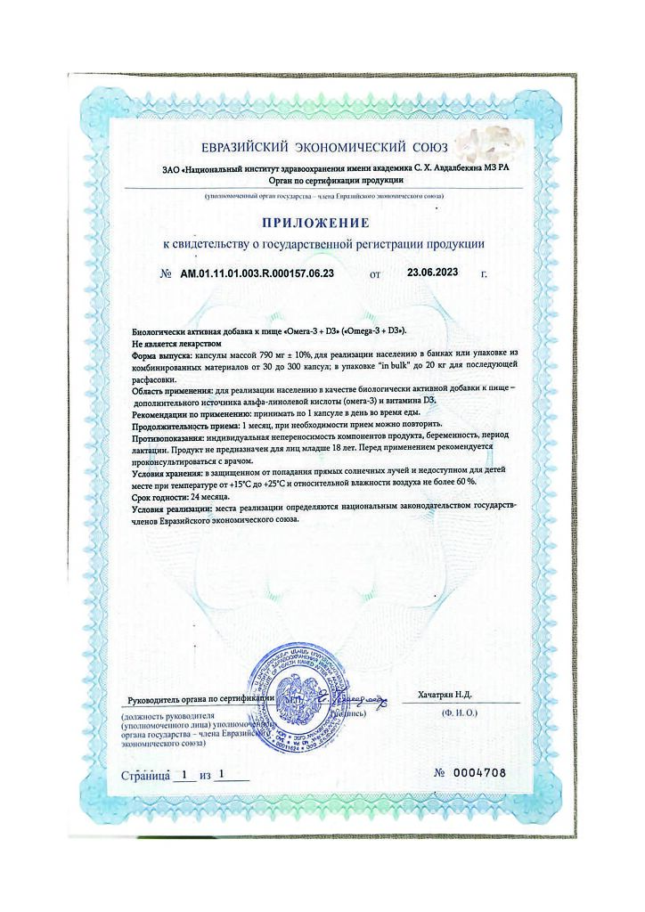 Документы 1WIN Омега-3+ D3 / Omega-3+ D3 капсулы массой 790 мг 60 шт