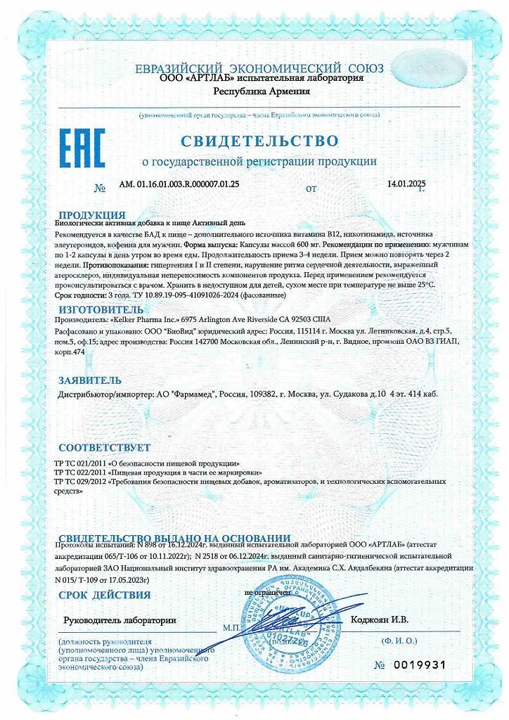 Документы Man's formula / Менс формула Активный день капсулы массой 600 мг 60 шт