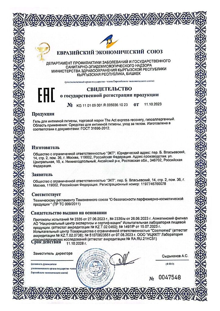 Документы The Act Гель для интимной гигиены гипоаллергенный с комплексом лизатов и молочной кислотой 200 мл 1 шт