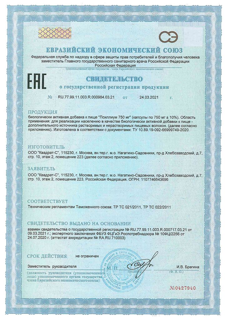 Документы Tetralab Псиллиум 750 мг капсулы по 750 мг 60 шт