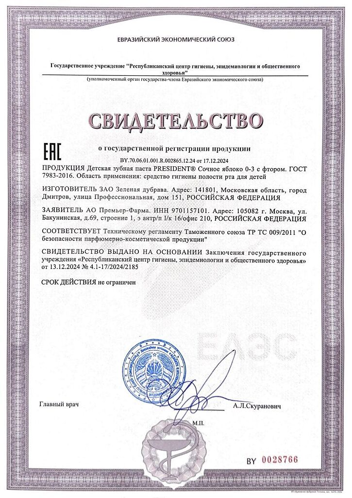 • 🏪 Купить PresiDent Детская зубная паста Сочное Яблоко (RDA 25) 0-3 45 г 1 шт можно на сайте и в наших аптеках в Тынде