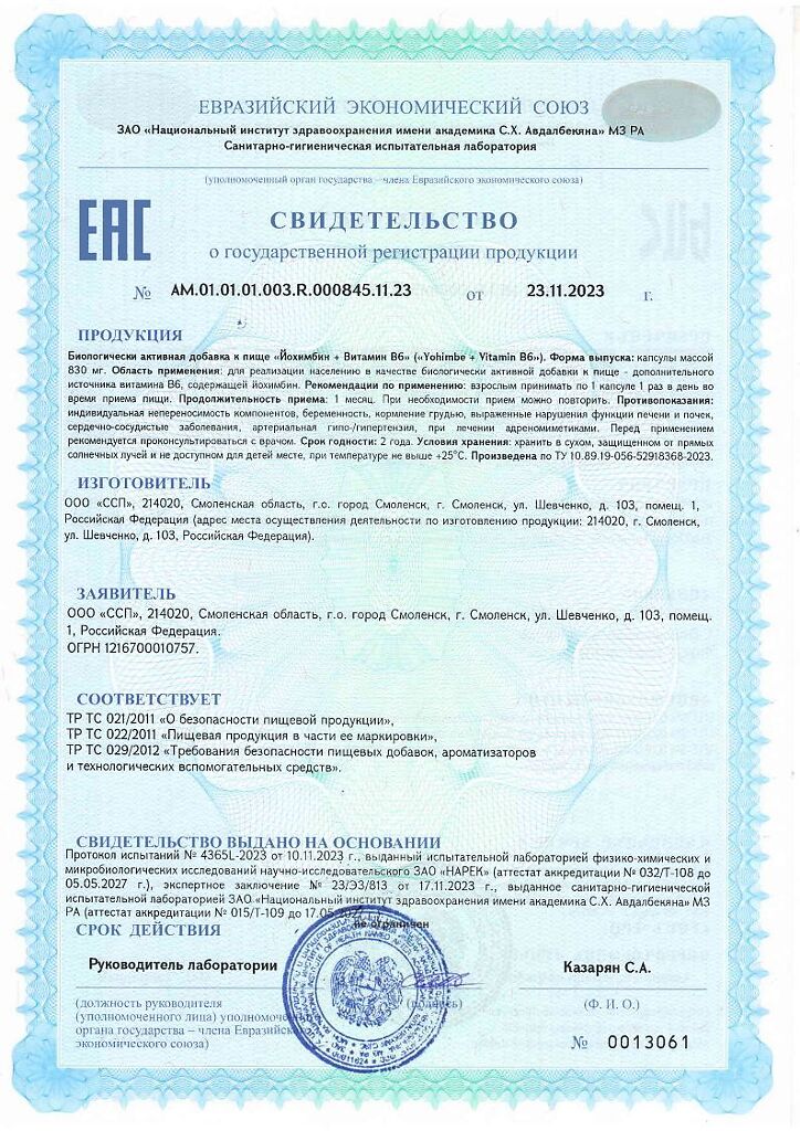 Документы 2SN Йохимбин+Витамин В6/Yohimbe+Vitamin B6 капсулы массой 830 мг 90 шт