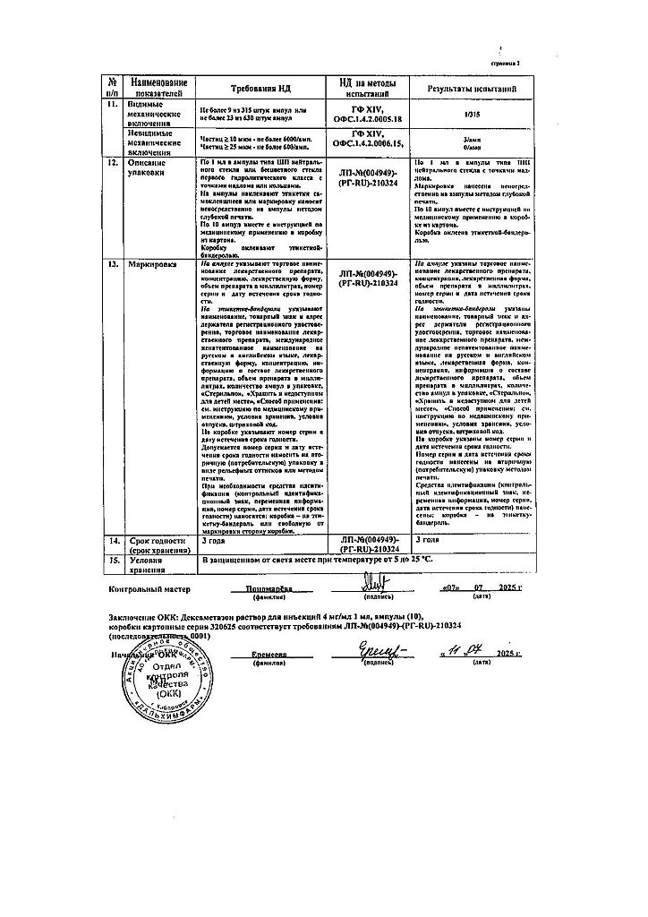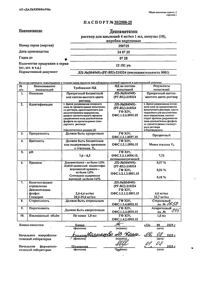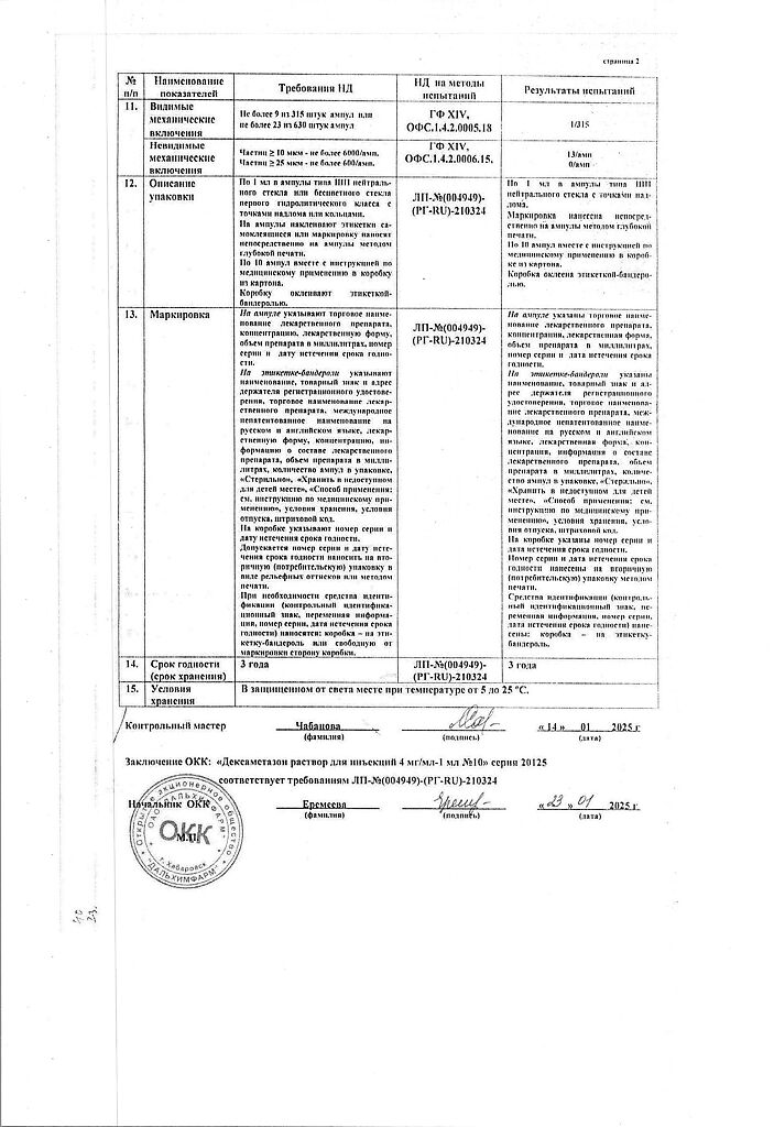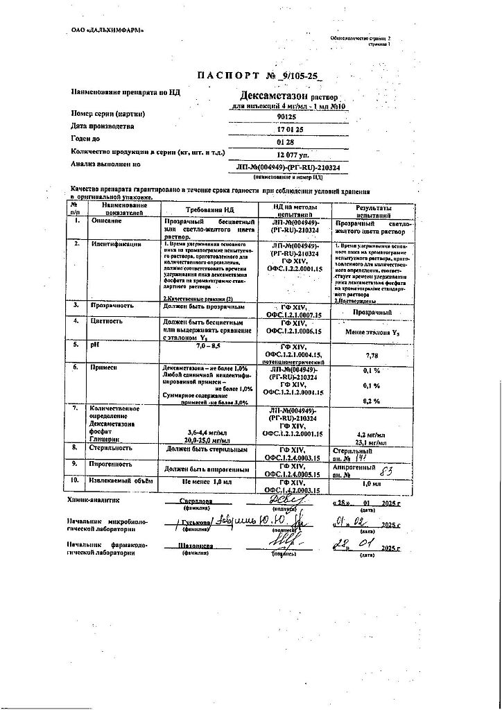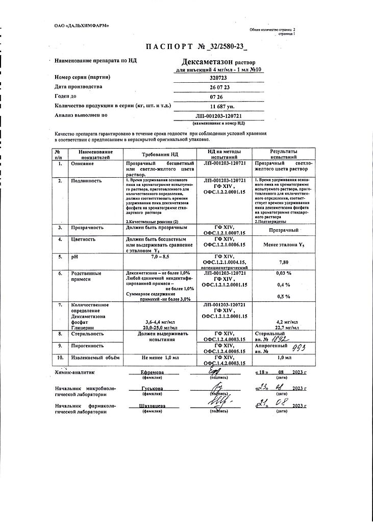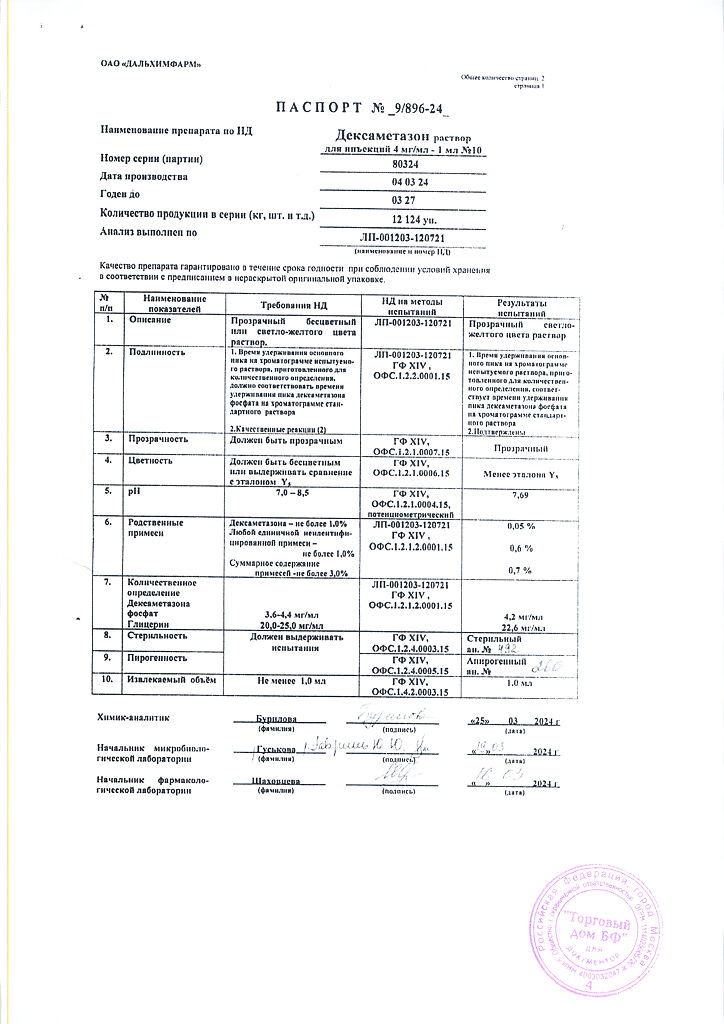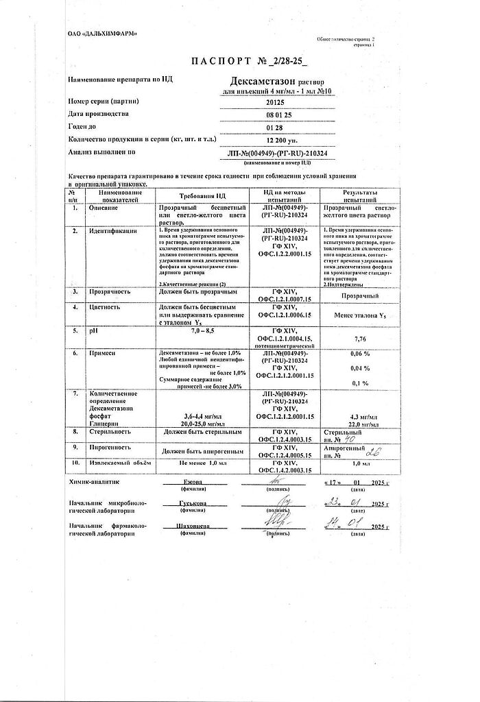 При остром отеке головного мозга проводят краткосрочную интенсивную терапию: взрослым нагрузочная доза составляет 50 мг в/в, затем на 1-3 день вводят по 8 мг каждые 2 ч, на 4-й день - 4 мг каждые 2 ч, на 5-8 день - по 4 мг каждые 4 ч, далее суточную дозу снижают на 4 мг/сут до полной ее отмены. Детям с массой тела более 35 кг нагрузочная доза составляет 25 мг в/в, затем на 1-3 день вводят по 4 мг каждые 2 ч, на 4-й день - 4 мг каждые 4 ч, на 5-8 день - по 4 мг каждые 6 ч, далее суточную дозу снижают на 2 мг/сут до полной ее отмены. Детям с массой тела менее 35 кг нагрузочная доза составляет 20 мг в/в, затем на 1-3 день вводят по 4 мг каждые 3 ч, на 4-й день - 4 мг каждые 6 ч, на 5-8 день - по 2 мг каждые 6 ч, далее суточную дозу снижают на 1 мг/сут до полной ее отмены. При острых самоограничивающихся аллергических реакциях или обострении хронических аллергических заболеваний комбинируют парентеральное и пероральное применение дексаметазона: 1-й день - в/в 4-8 мг, 2-3 день - внутрь 1 мг 2 раза в сутки, 4-5 день - внутрь 0.5 мг 2 раза в сутки, 6-7 день - внутрь 0.5 мг однократно. На 8-й день оценивают эффективность терапии.