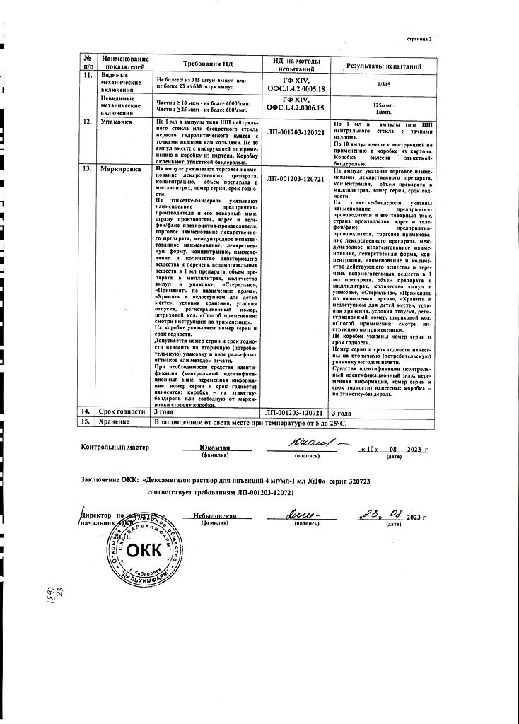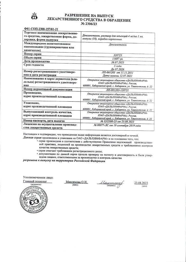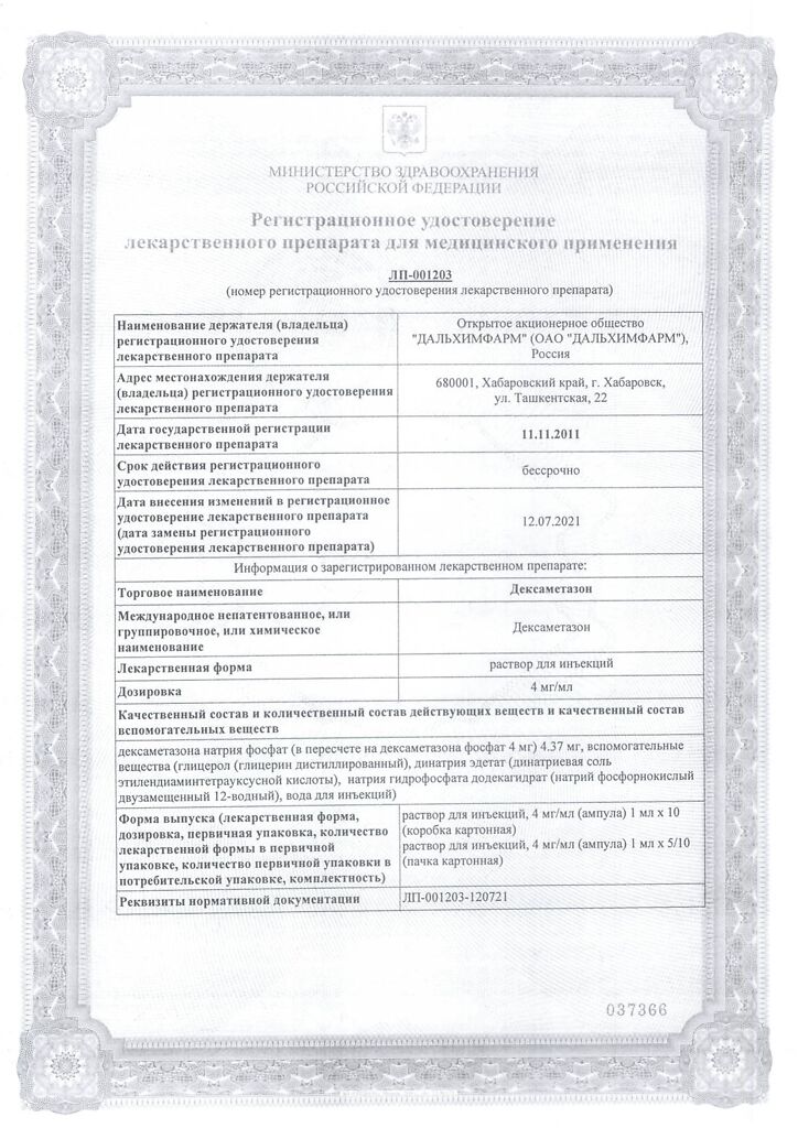 При шоке вводят строго в/в болюсно в дозе 2-6 мг/кг. При необходимости повторные дозы вводят каждые 2-6 ч либо в виде длительной в/в инфузии в дозе 3 мг/кг/сут. Лечение дексаметазоном должно проводиться в составе комплексной терапии шока. Применение фармакологических доз допустимо только при угрожающих жизни состояниях, и, как правило, это время не превышает 48 - 72 ч.
