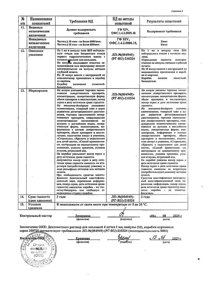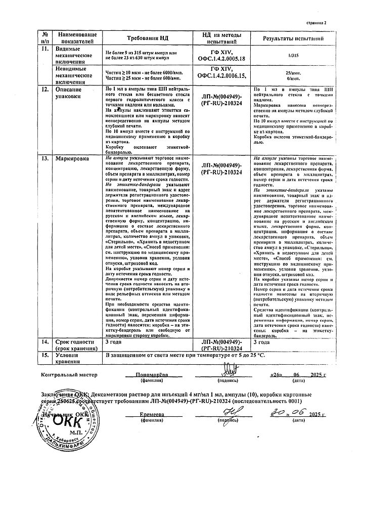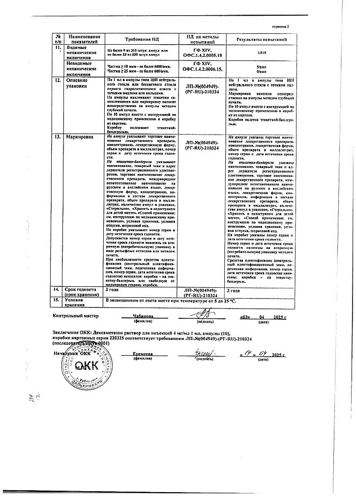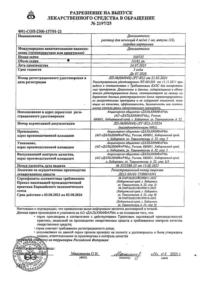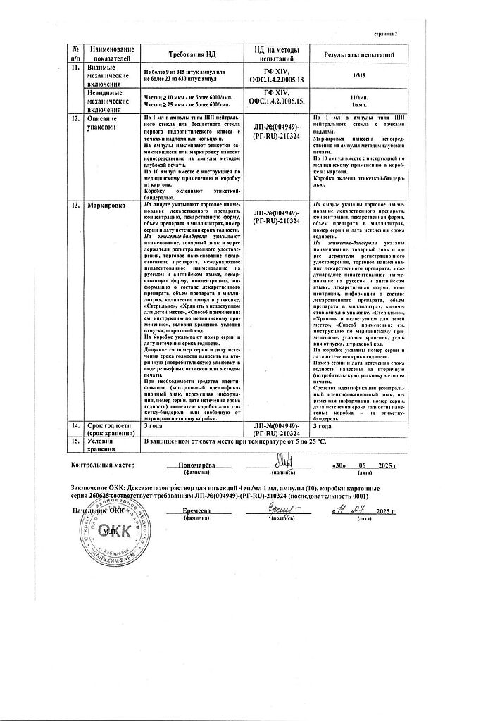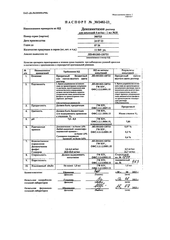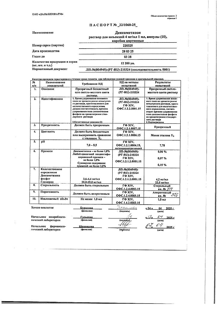 Дексаметазон фармацевтически несовместим с другими лекарственными средствами (ЛС) (может образовывать нерастворимые соединения). Его рекомендуется вводить отдельно от других препаратов (в/в болюсно, либо через другую капельницу, как второй раствор). При смешивании раствора дексаметазона с гепарином образуется осадок.