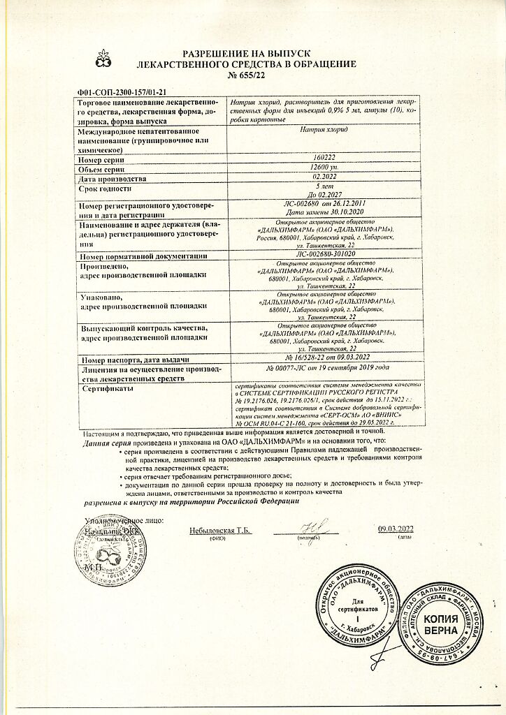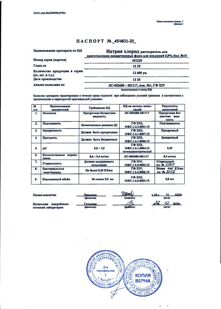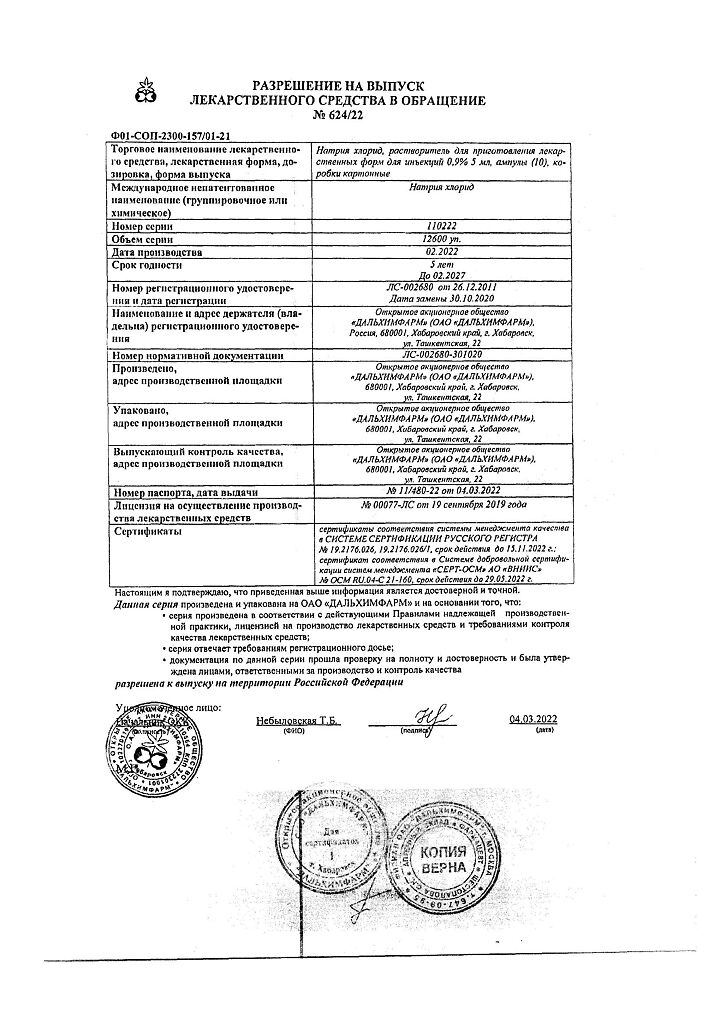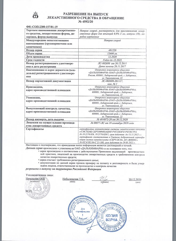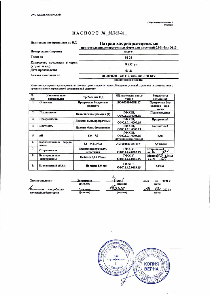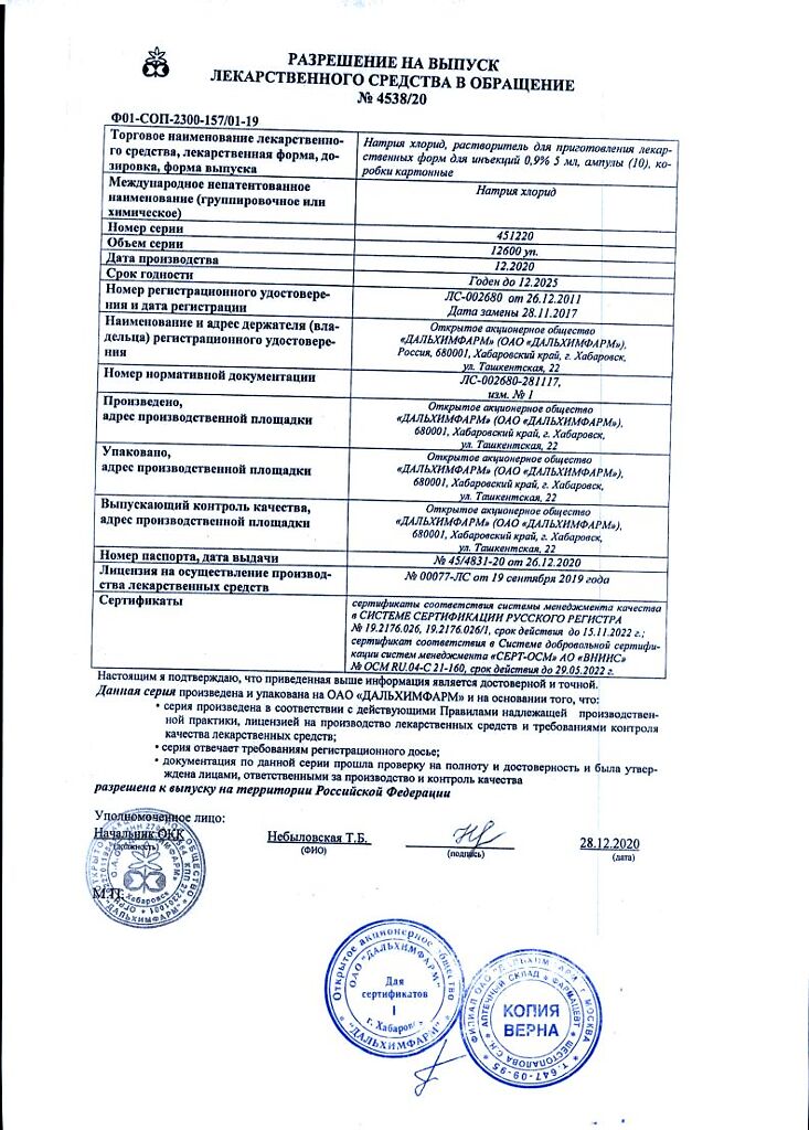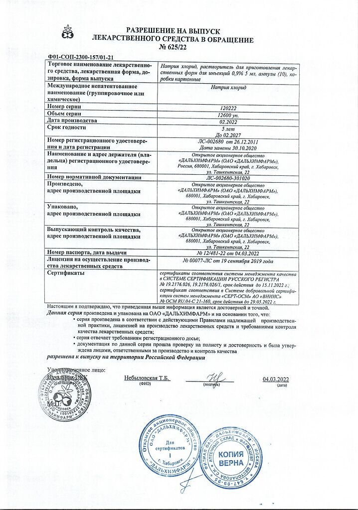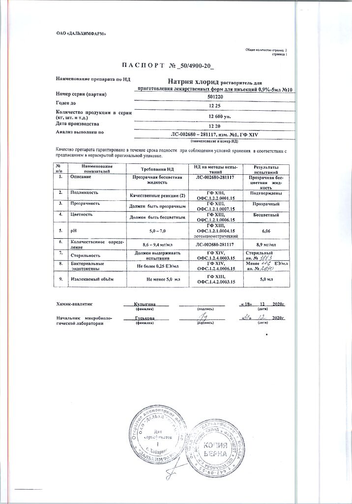 Гипертонический раствор натрия хлорида при применении в/в обеспечивает коррекцию осмотического давления внеклеточной жидкости и плазмы крови.