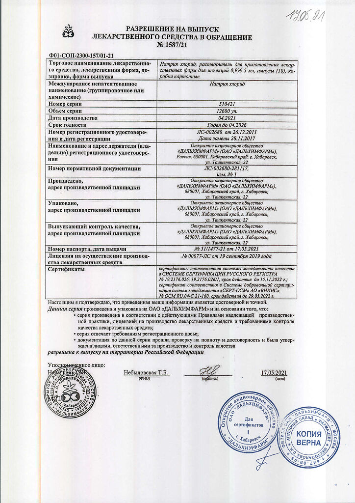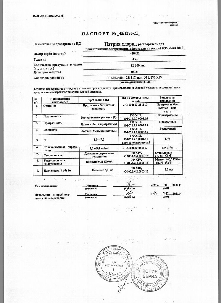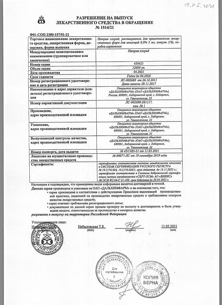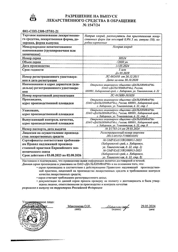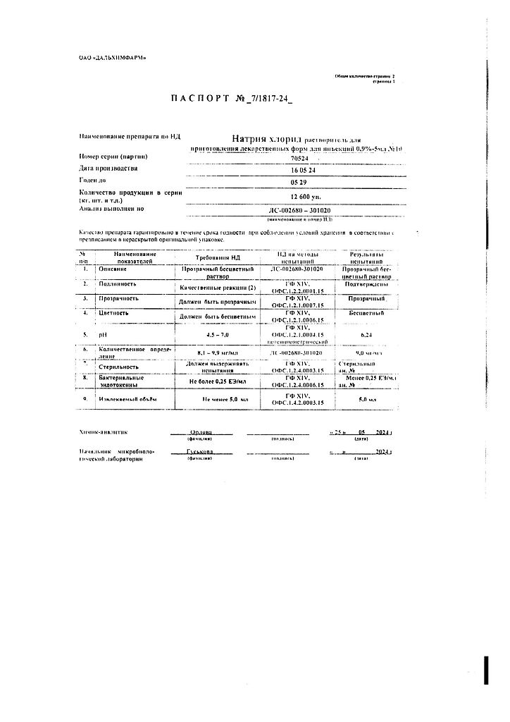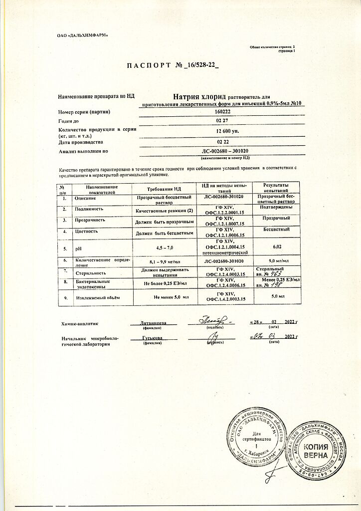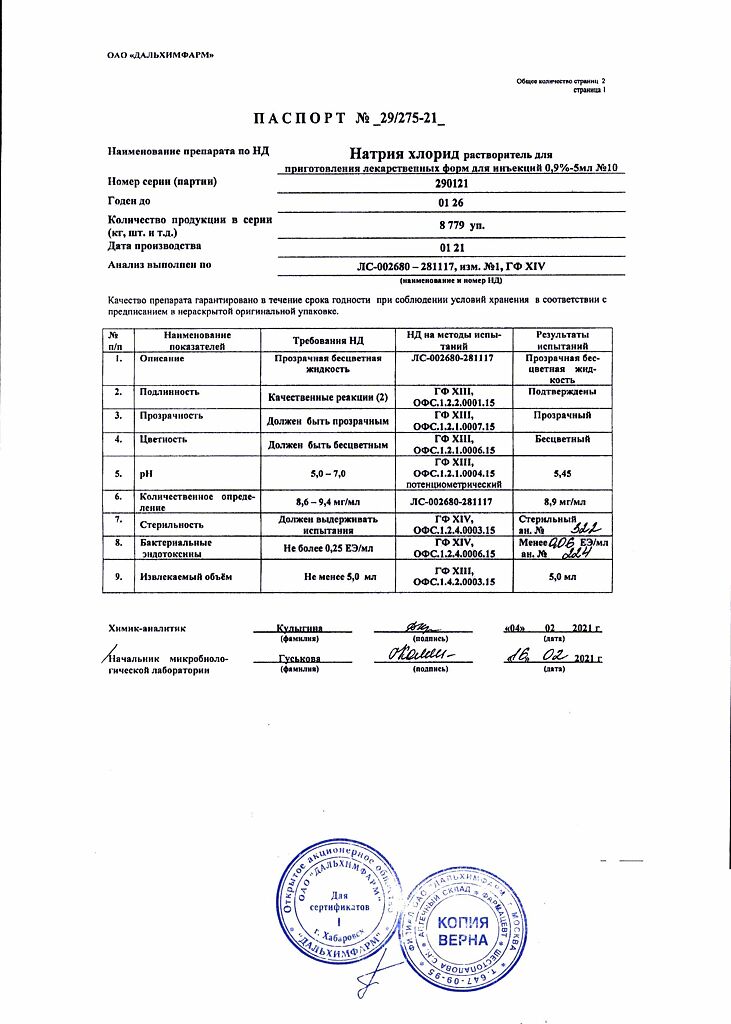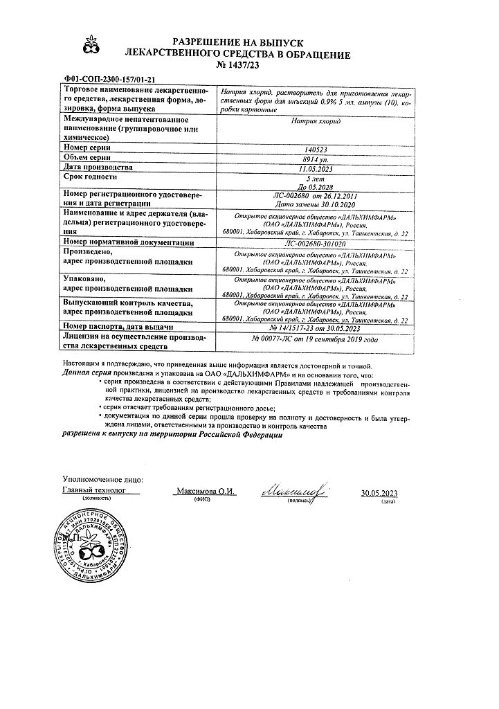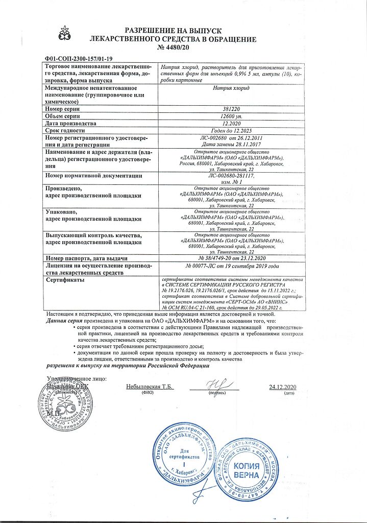 Гипертонический раствор натрия хлорида при применении в/в обеспечивает коррекцию осмотического давления внеклеточной жидкости и плазмы крови.