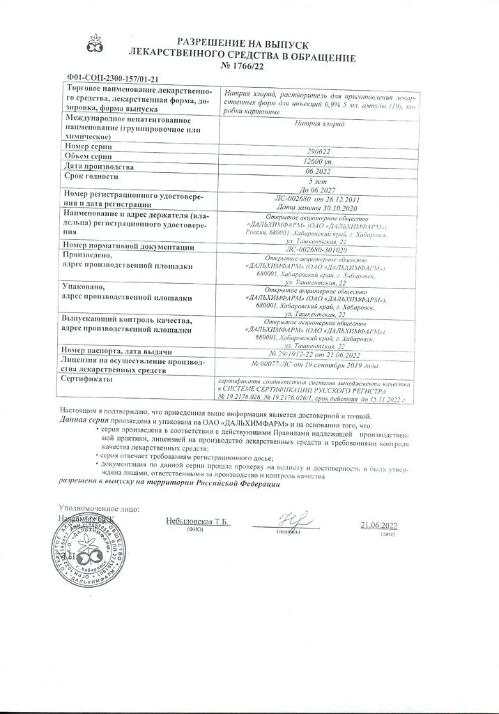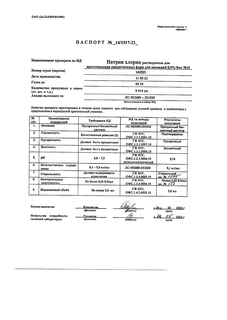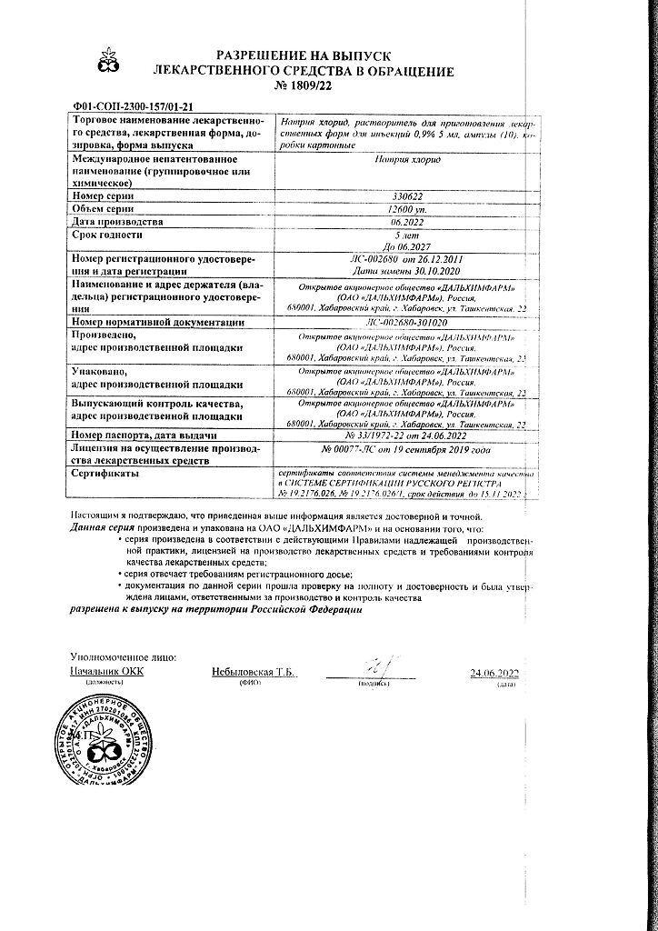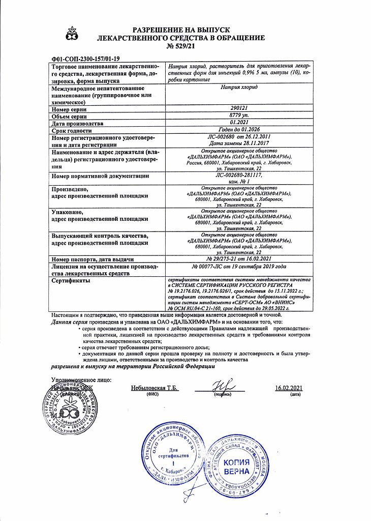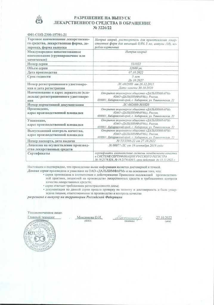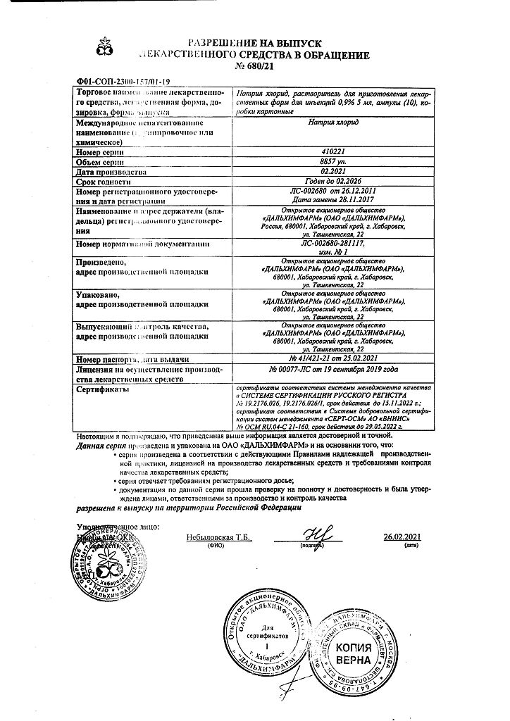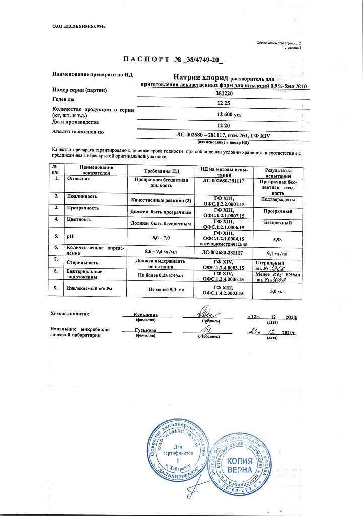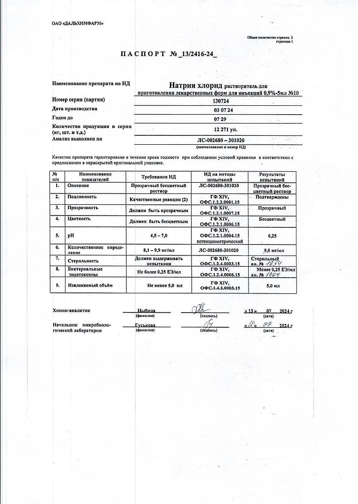 Гипертонический раствор натрия хлорида при применении в/в обеспечивает коррекцию осмотического давления внеклеточной жидкости и плазмы крови.