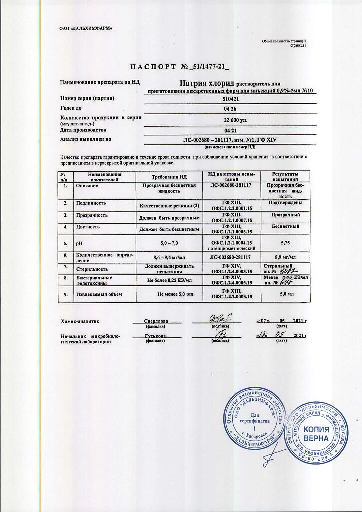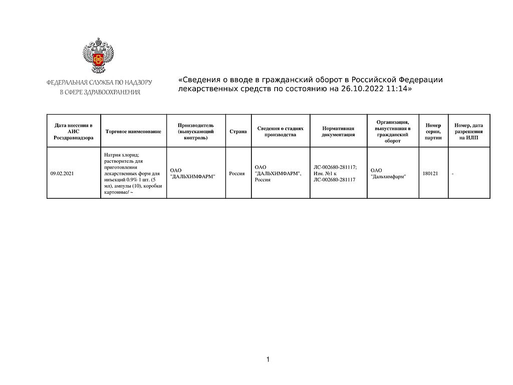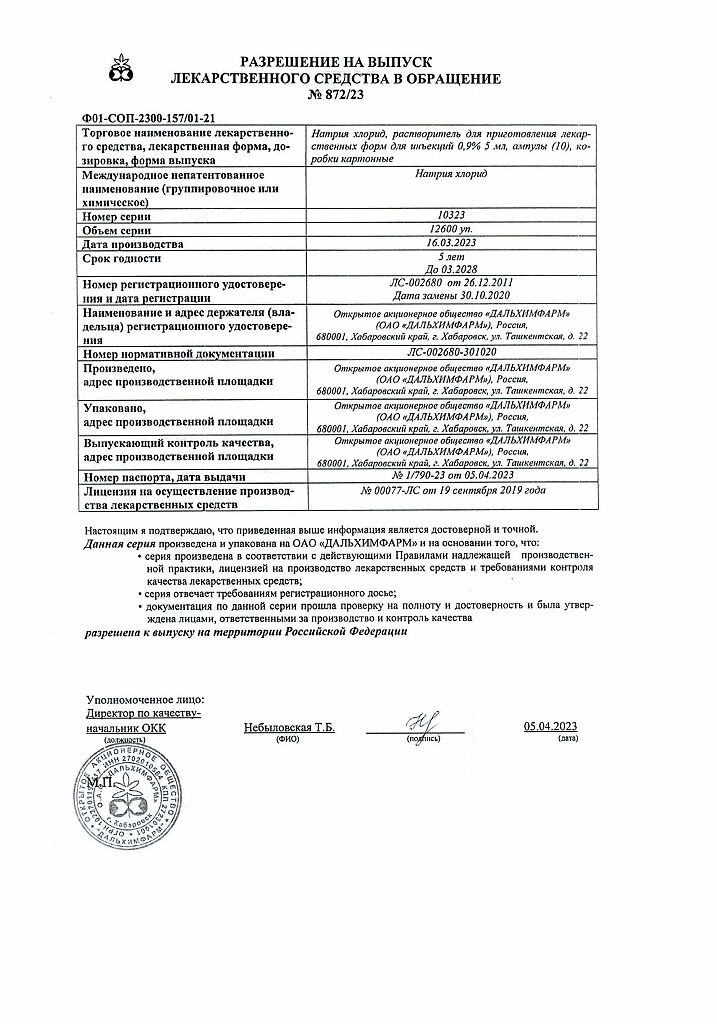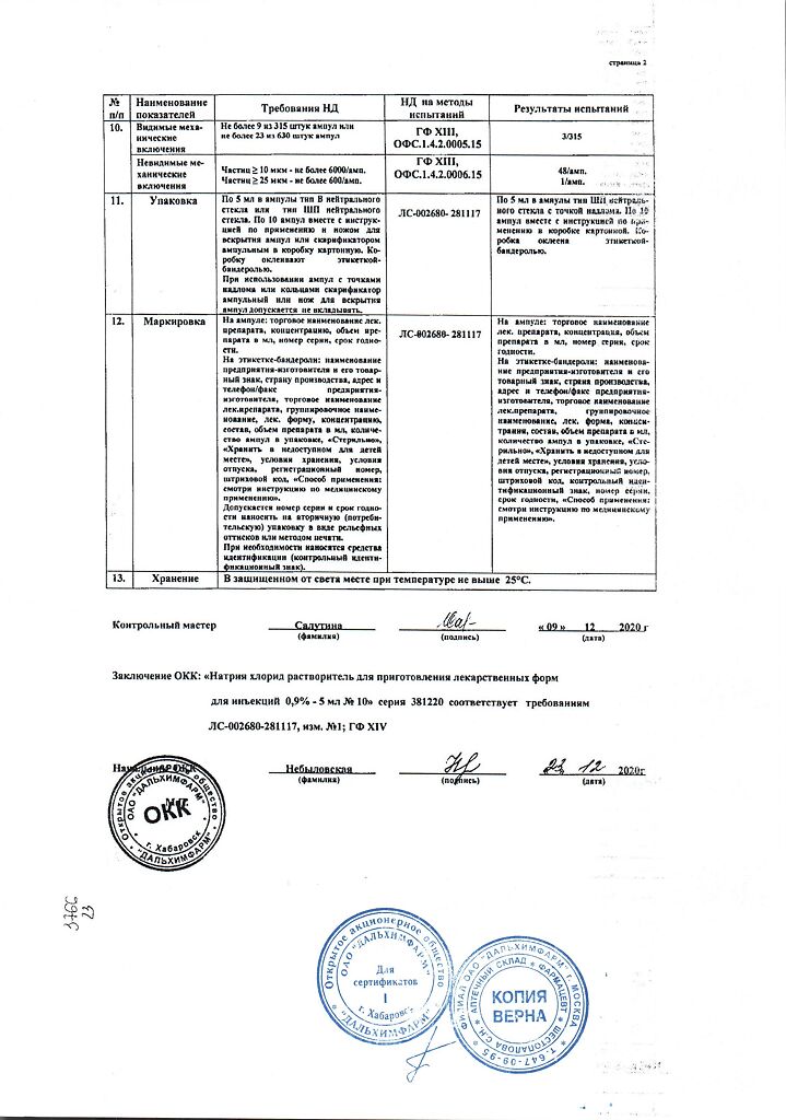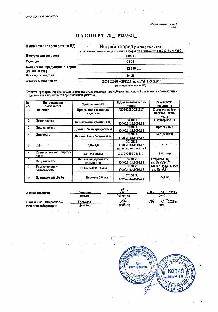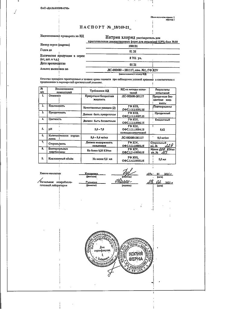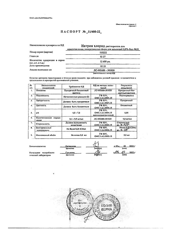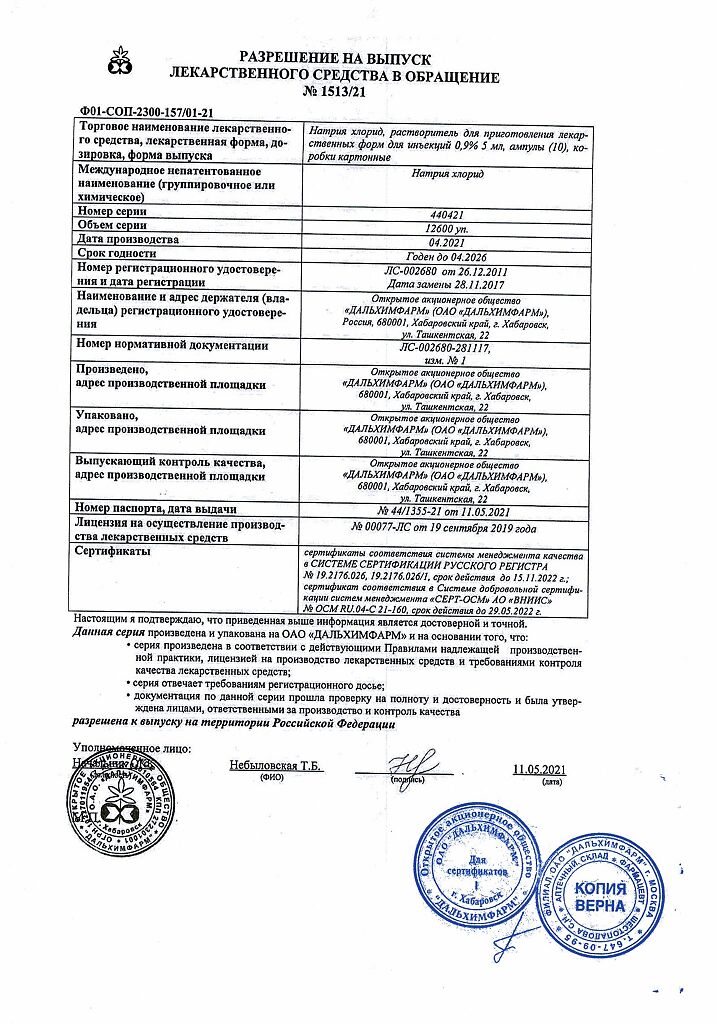 Гипертонический раствор натрия хлорида при применении в/в обеспечивает коррекцию осмотического давления внеклеточной жидкости и плазмы крови.